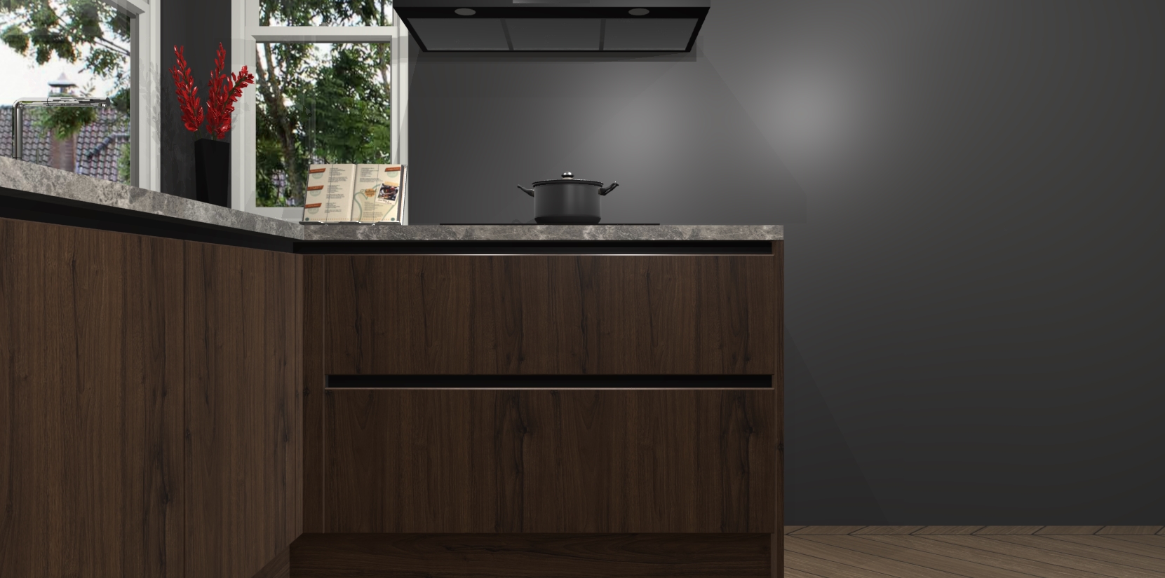 We hebben iets speciaals voor u: de Noten greeploze keuken Kotor. Het is een hoekkeuken die sfeer en warmte uitstraalt, en zijn hout-look geeft hem een unieke touch. Perfect voor elk huis!