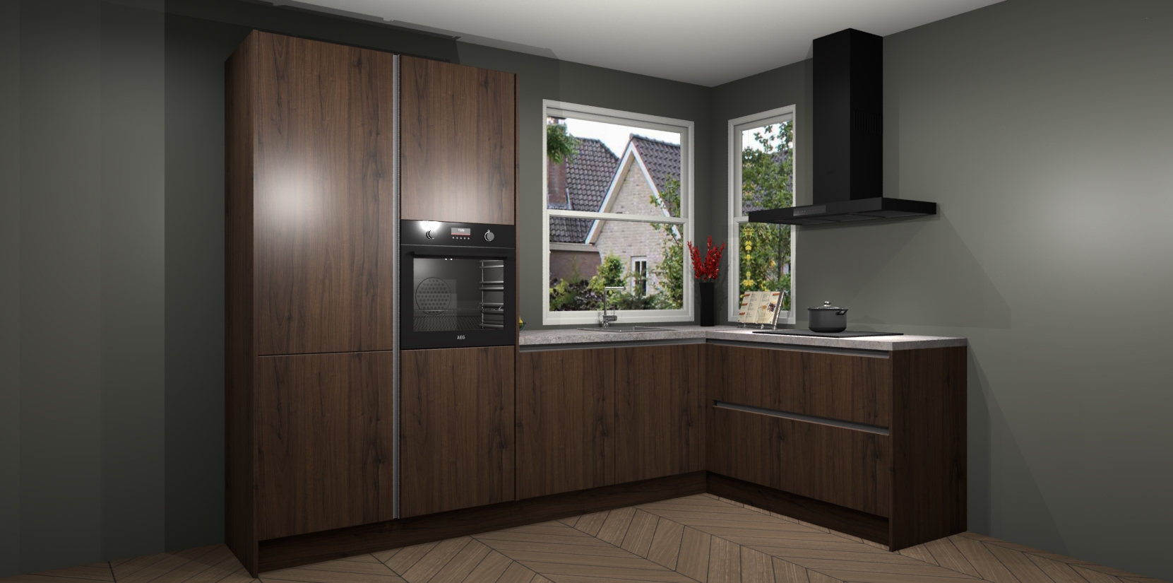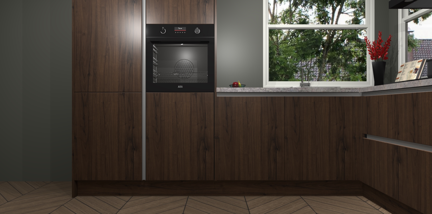 De Noten greeploze keuken Kotor wordt geleverd met vijf inbouwapparaten, waaronder een oven, inductiekookplaat, afzuigkap, vaatwasser en koelkast. En als u uw apparatuur wilt upgraden, kunnen we u na bestelling eenvoudig helpen overstappen naar AEG. Bovendien heeft deze keuken soft close deuren, zodat lades en kastjes geruisloos en zonder klepperen sluiten!