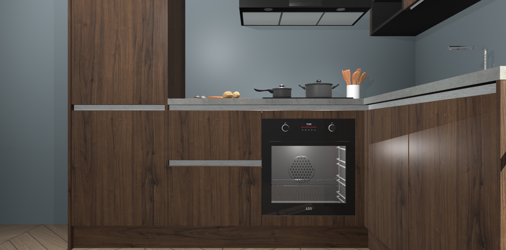 Dit model biedt u voldoende opbergruimte en vijf ingebouwde apparaten: een oven, inductiekookplaat, afzuigkap, vaatwasser en koelkast. Deze apparaten kunnen gemakkelijk worden geüpgrade naar AEG nadat u besteld heeft. De verschillende laden en kastjes bevatten softclose-deuren waardoor ze gezellig dichtvallen met een geruststellend helemaal geruisloos geluid. En dat is nog niet alles! We garanderen ook dat de prijs altijd laag blijft - dus haal nu uw Noten greeploze keuken Krakau terwijl het kan.