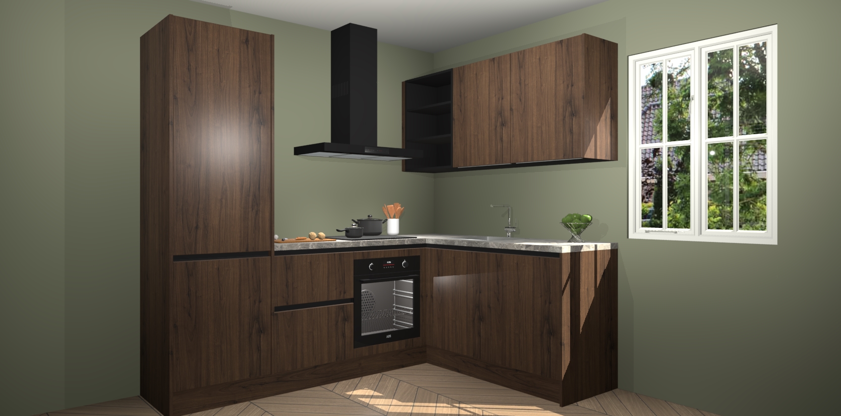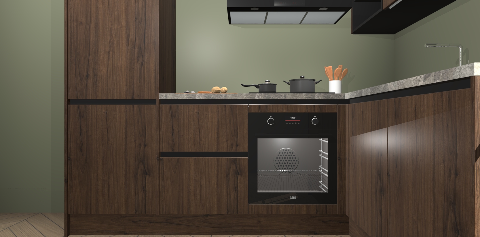 Dit model biedt u voldoende opbergruimte en vijf ingebouwde apparaten: een oven, inductiekookplaat, afzuigkap, vaatwasser en koelkast. Deze apparaten kunnen gemakkelijk worden geüpgrade naar AEG nadat u besteld heeft. De verschillende laden en kastjes bevatten softclose-deuren waardoor ze gezellig dichtvallen met een geruststellend helemaal geruisloos geluid. En dat is nog niet alles! We garanderen ook dat de prijs altijd laag blijft - dus haal nu uw Noten greeploze keuken Krakau terwijl het kan.