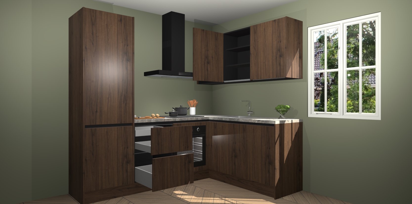 Bestellen was nog nooit zo makkelijk en we leveren met slechts 7 weken; zodra de keuken arriveert staan de kasten voor gemonteerd klaar om er alles aan te doen dat u hem gemakkelijk zelf kunt installeren! Eén ding is zeker: met de Noten greeploze keuken Krakau slaagt u erin modischer, modernere keukens uit te rusten die tientallen jaren meegaan! Haal snel uw Noten greeploze keuken Krakau - of u nu net begint of al 'levenservaring' hebt in de keukendroomloopbaan - want dit topmodel van onze collectie wilt u absoluut niet missen.