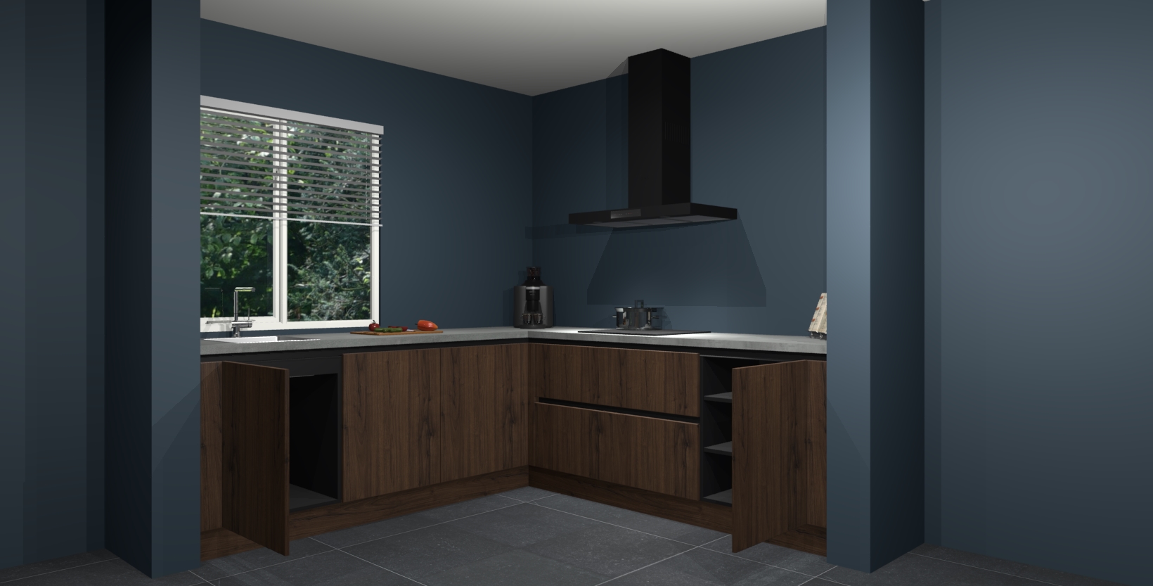 Hoekonderkast met le-mans systeem