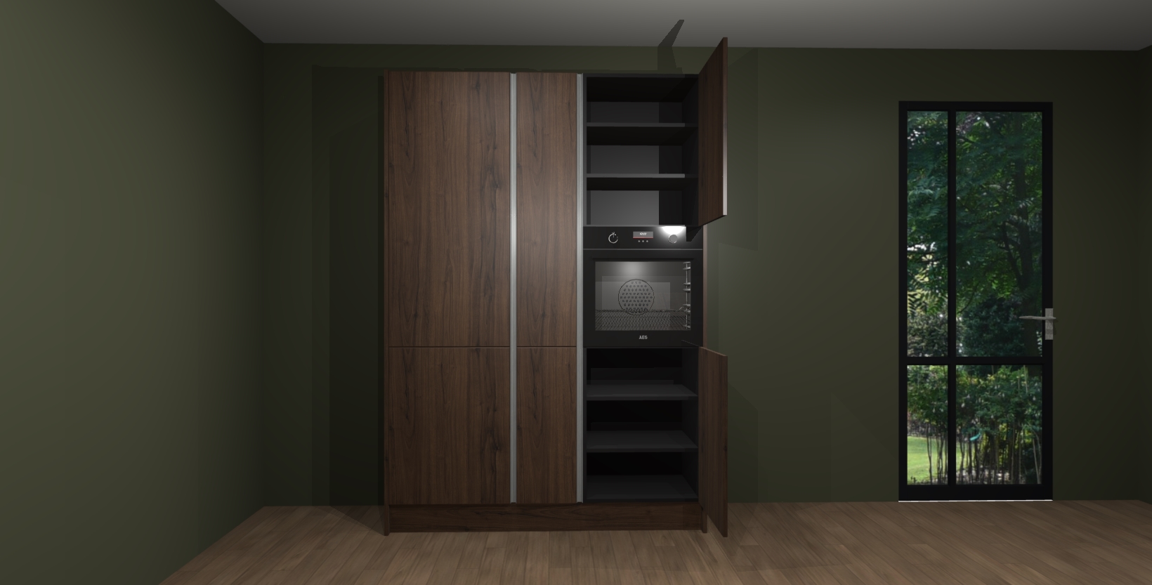 Met een modern, tijdloos design en ruime opslagruimte, zult u zich in no-time thuis voelen in uw nieuwe keuken. Uw leven wordt eenvoudiger met de soft-close deuren die voor het ultieme stille comfort zorgen - geen geluid dat u stoort terwijl u kookt. Ook is de keuken voorzien van 5 ingebouwde apparaten: een oven, inductie kookplaat, afzuigkap, vaatwasser en koelkast. Deze kunnen gemakkelijk na bestelling worden bijgewerkt naar AEG - waardoor uw luxe ervaring compleet is.