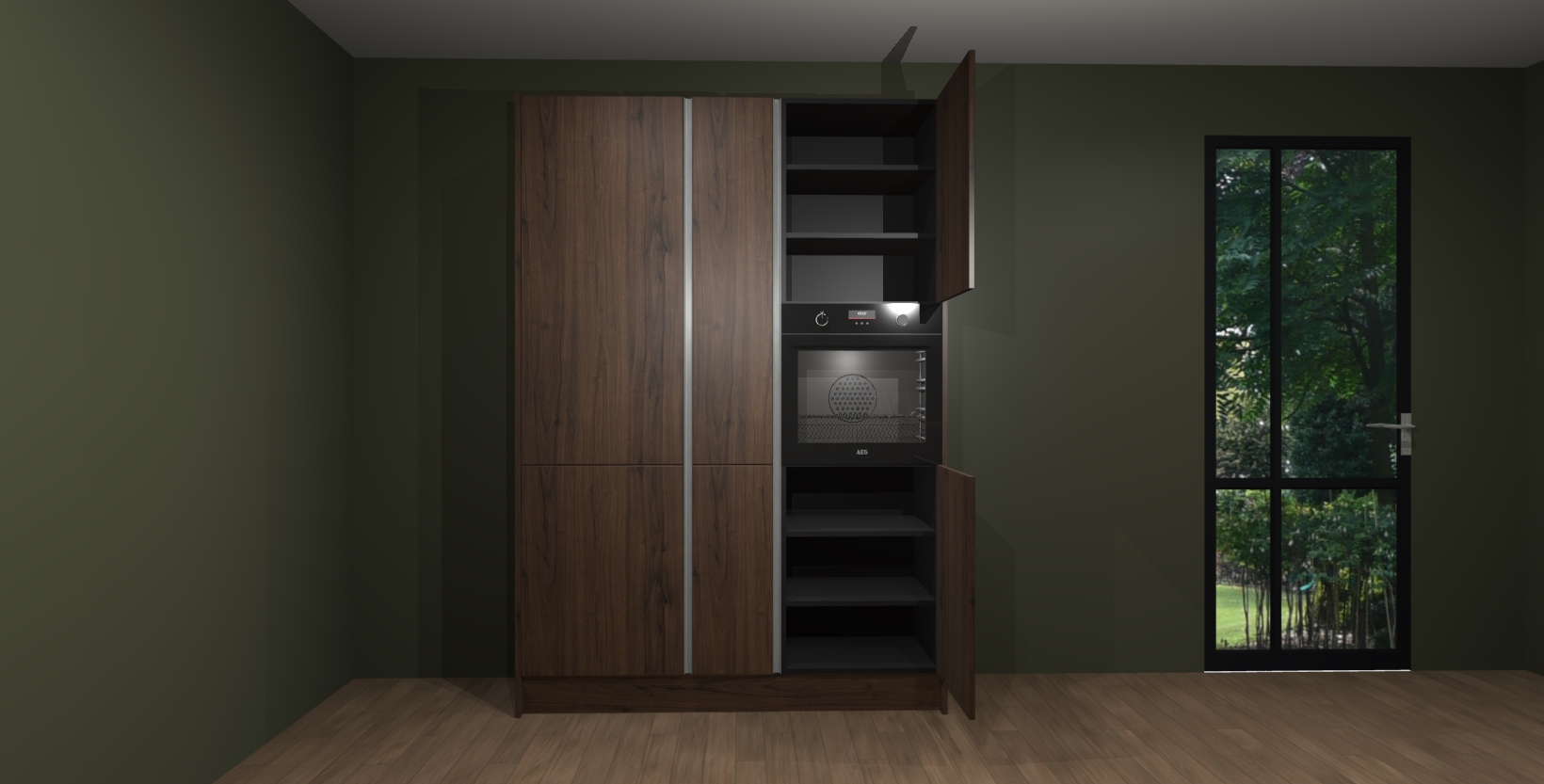 Met een modern, tijdloos design en ruime opslagruimte, zult u zich in no-time thuis voelen in uw nieuwe keuken. Uw leven wordt eenvoudiger met de soft-close deuren die voor het ultieme stille comfort zorgen - geen geluid dat u stoort terwijl u kookt. Ook is de keuken voorzien van 5 ingebouwde apparaten: een oven, inductie kookplaat, afzuigkap, vaatwasser en koelkast. Deze kunnen gemakkelijk na bestelling worden bijgewerkt naar AEG - waardoor uw luxe ervaring compleet is.