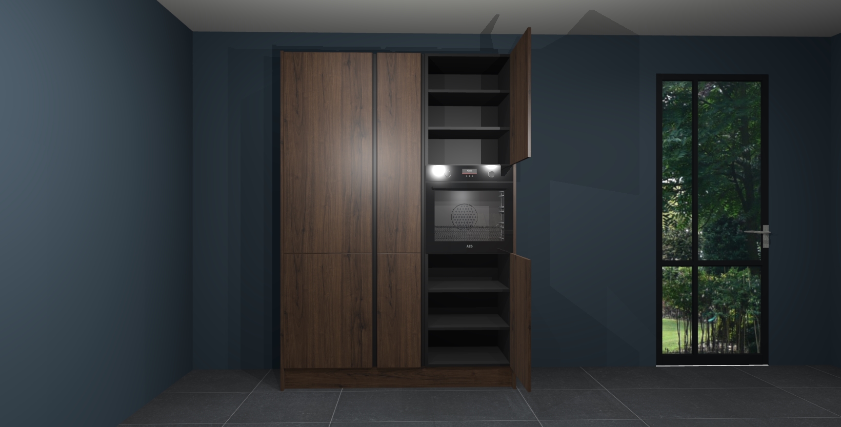 Met een modern, tijdloos design en ruime opslagruimte, zult u zich in no-time thuis voelen in uw nieuwe keuken. Uw leven wordt eenvoudiger met de soft-close deuren die voor het ultieme stille comfort zorgen - geen geluid dat u stoort terwijl u kookt. Ook is de keuken voorzien van 5 ingebouwde apparaten: een oven, inductie kookplaat, afzuigkap, vaatwasser en koelkast. Deze kunnen gemakkelijk na bestelling worden bijgewerkt naar AEG - waardoor uw luxe ervaring compleet is.