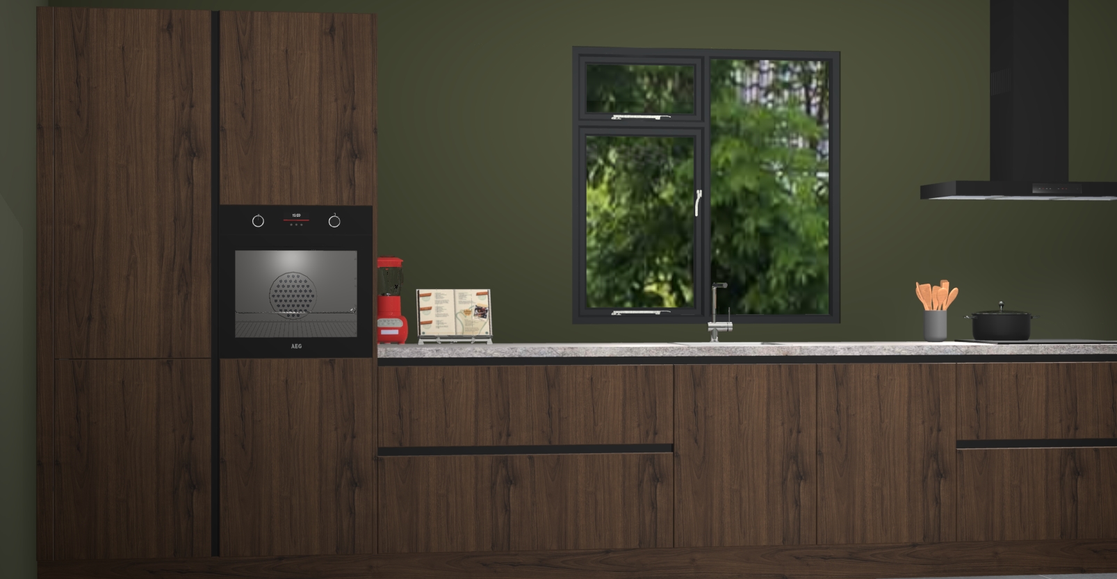 De Noten keuken Lille wordt geleverd met vijf inbouwapparaten - een oven, inductiekookplaat, afzuigkap, vaatwasser en koelkast. Maar dat is nog niet alles! Na bestelling kunnen deze apparaten eenvoudig worden geüpgraded naar premium AEG-apparatuur. Bovendien is er zelfs de optie om de oven te vervangen door een combimagnetron of uw inductiekookplaat te vervangen door een kookplaat met geïntegreerde afzuiging.