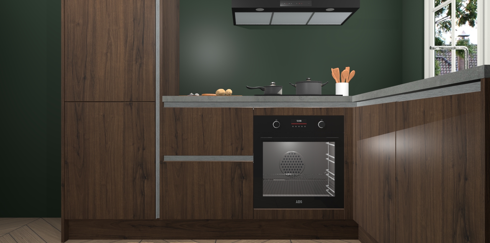 Met de Noten greeploze keuken Linz krijgt u 5 op maat gemaakte apparaten: een oven, inductiekookplaat, afzuigkap, vaatwasser en koelkast die na bestelling makkelijk worden geüpgraded naar AEG-producten. Met de zacht sluitende deuren, bent u verzekerd van eenvoudige bediening in stilte. Het kastmeubilair wordt alvast pre-assemblage geleverd waardoor u sneller met het installeren begint. Ook zijn alle deuren voorzien van softclose zodat er geen sporen op de lade blijven als u ze dicht doet. Bovendien hoeft u bij ons geen twijfels of verassingen te hebben: we hebben een vaste lage prijs waardoor u weet wat u mag verwachten bij elke bestelling.