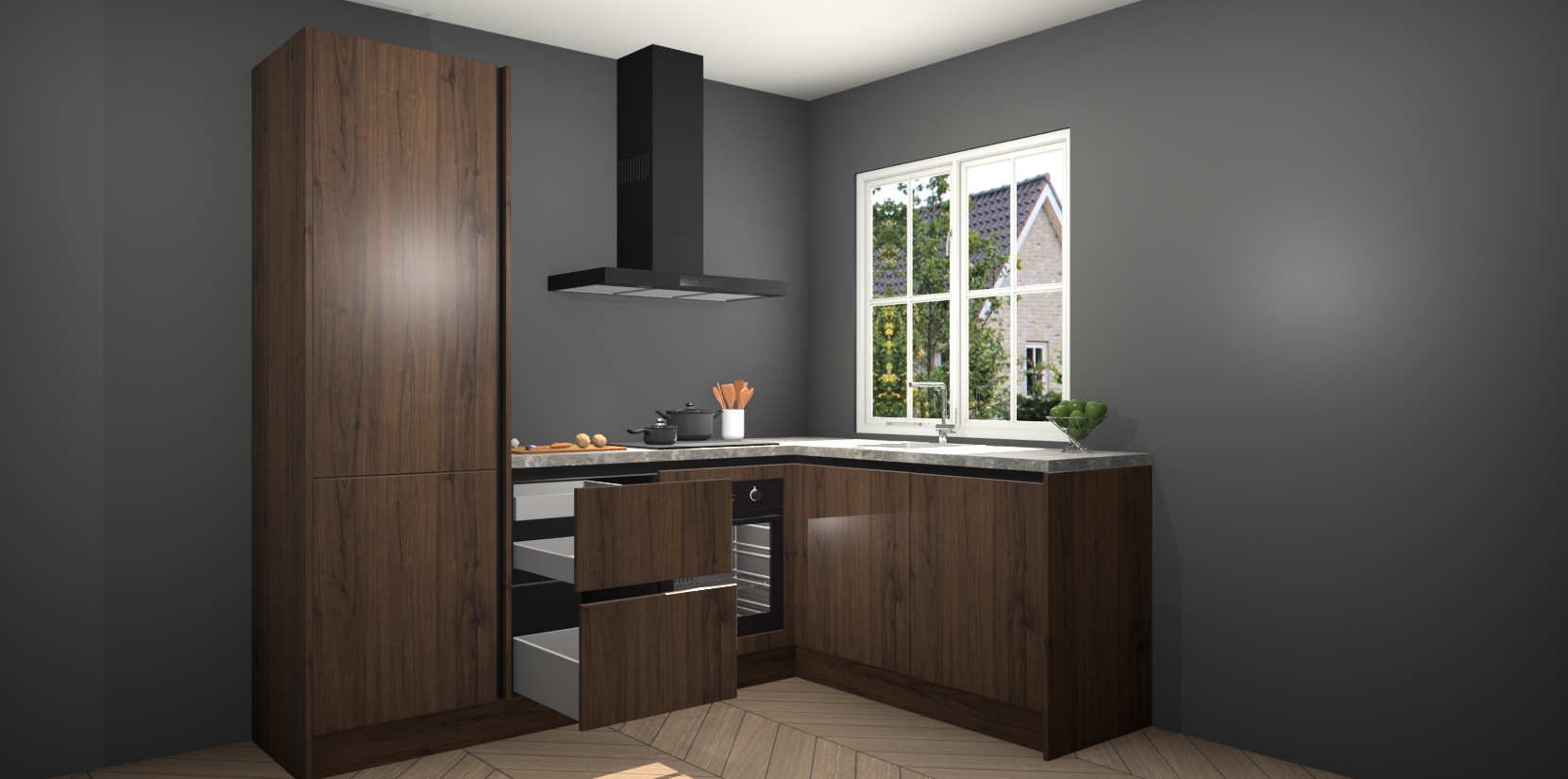 Met de Noten greeploze keuken Linz krijgt u 5 op maat gemaakte apparaten: een oven, inductiekookplaat, afzuigkap, vaatwasser en koelkast die na bestelling makkelijk worden geüpgraded naar AEG-producten. Met de zacht sluitende deuren, bent u verzekerd van eenvoudige bediening in stilte. Het kastmeubilair wordt alvast pre-assemblage geleverd waardoor u sneller met het installeren begint. Ook zijn alle deuren voorzien van softclose zodat er geen sporen op de lade blijven als u ze dicht doet. Bovendien hoeft u bij ons geen twijfels of verassingen te hebben: we hebben een vaste lage prijs waardoor u weet wat u mag verwachten bij elke bestelling.