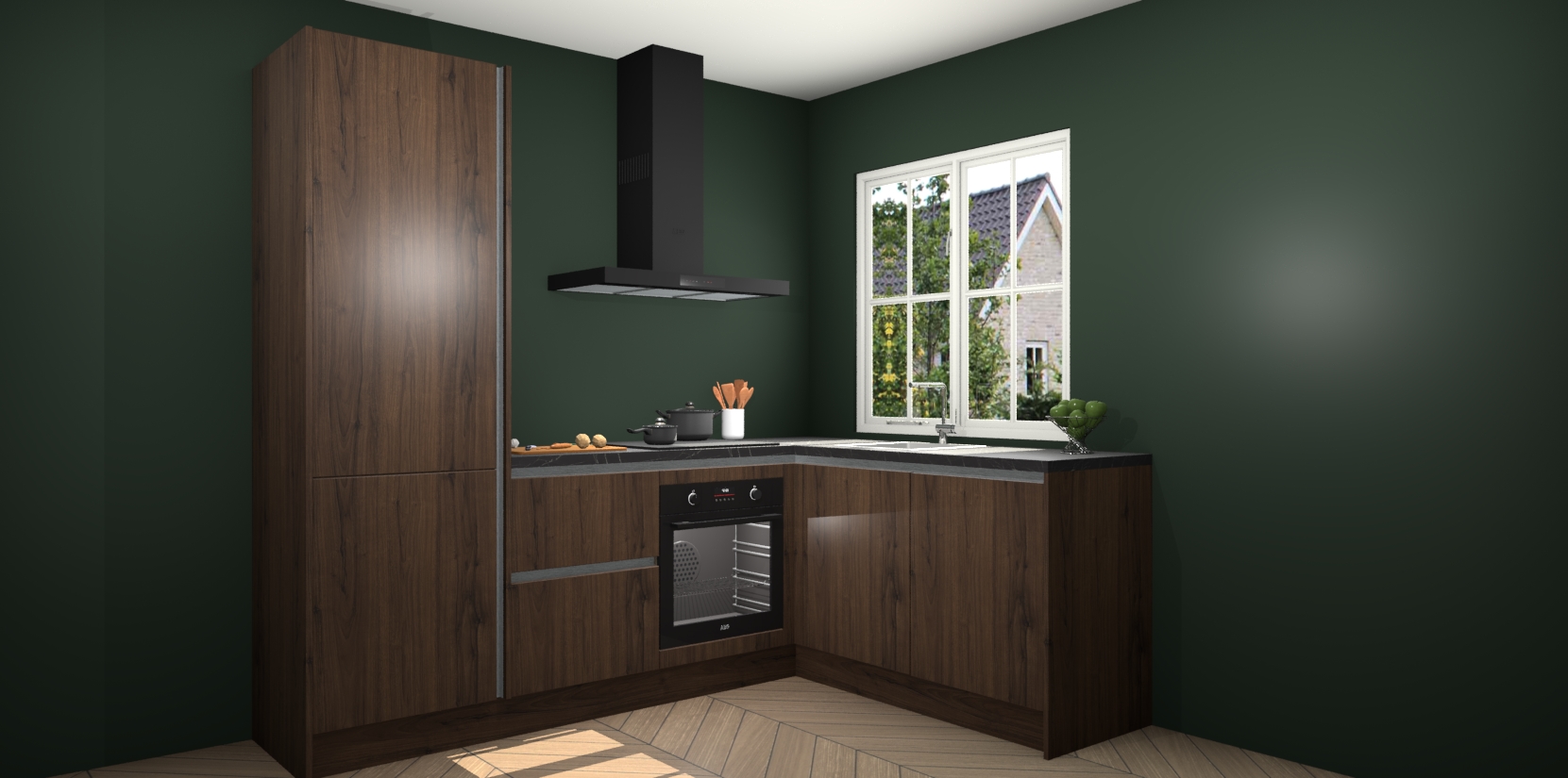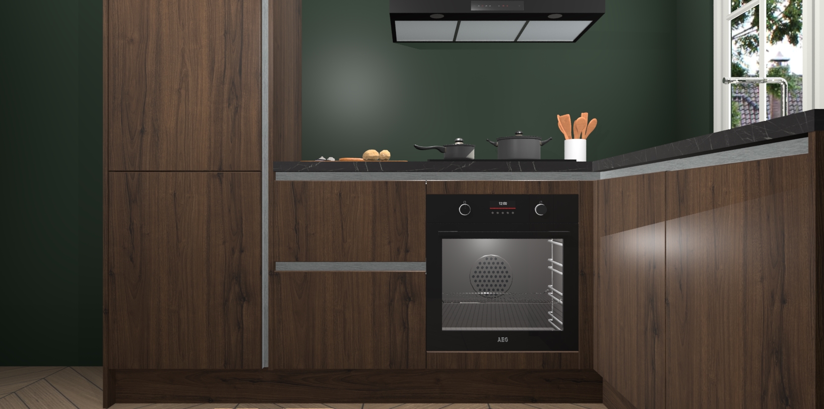 Met de Noten greeploze keuken Linz krijgt u 5 op maat gemaakte apparaten: een oven, inductiekookplaat, afzuigkap, vaatwasser en koelkast die na bestelling makkelijk worden geüpgraded naar AEG-producten. Met de zacht sluitende deuren, bent u verzekerd van eenvoudige bediening in stilte. Het kastmeubilair wordt alvast pre-assemblage geleverd waardoor u sneller met het installeren begint. Ook zijn alle deuren voorzien van softclose zodat er geen sporen op de lade blijven als u ze dicht doet. Bovendien hoeft u bij ons geen twijfels of verassingen te hebben: we hebben een vaste lage prijs waardoor u weet wat u mag verwachten bij elke bestelling.
