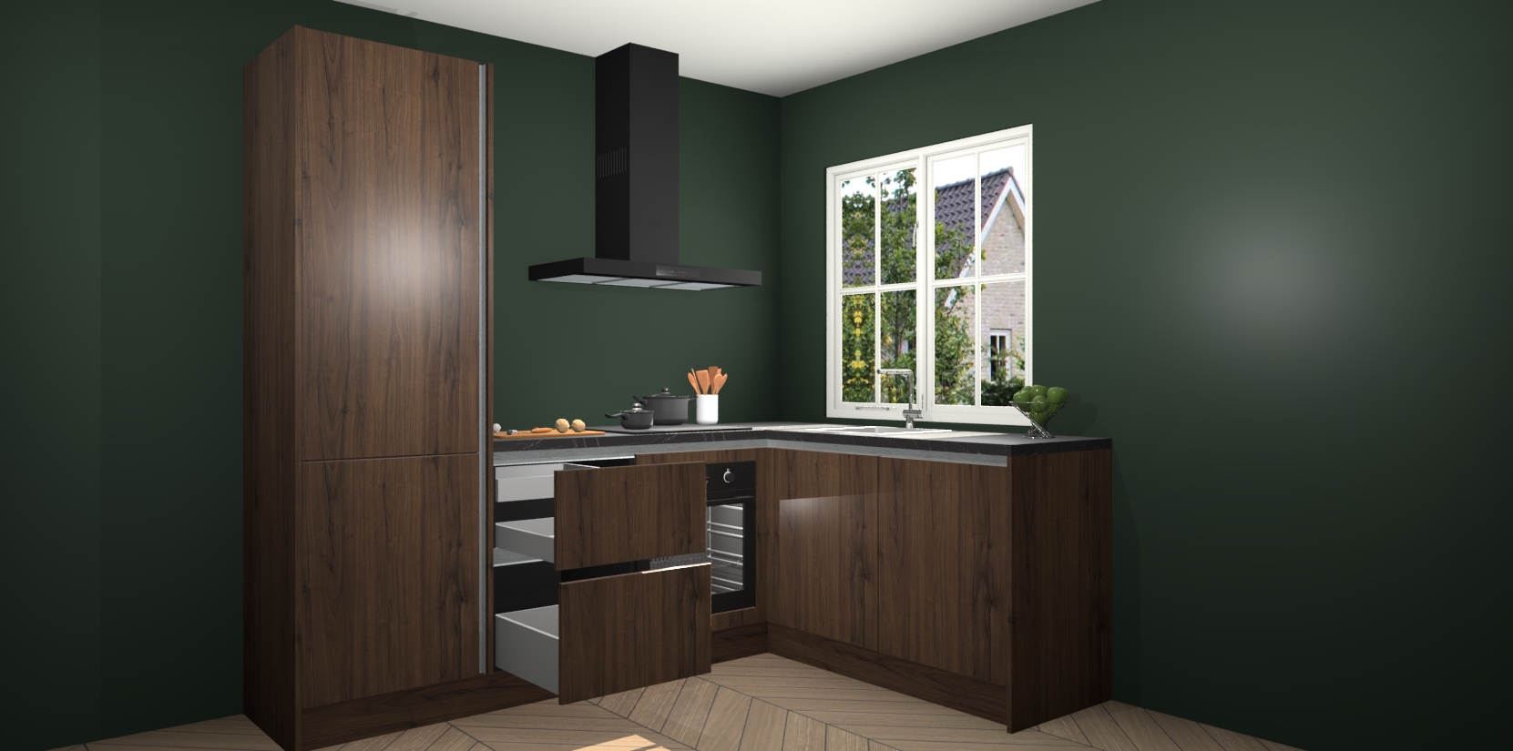 De Noten greeploze keuken Linz is de perfecte keuze voor uw nieuwe moderne en tijdloze keuken. Ga voor moderne en tijdloze elegantie in uw keuken. De prachtige hoekkeuken biedt een verfrissende kijk op de manier waarop we ons vertrouwde keukenontwerp kunnen aanpassen in een nieuwe stijl. Één blik om alles te zien: zo mooi dat het bijna magisch lijkt.