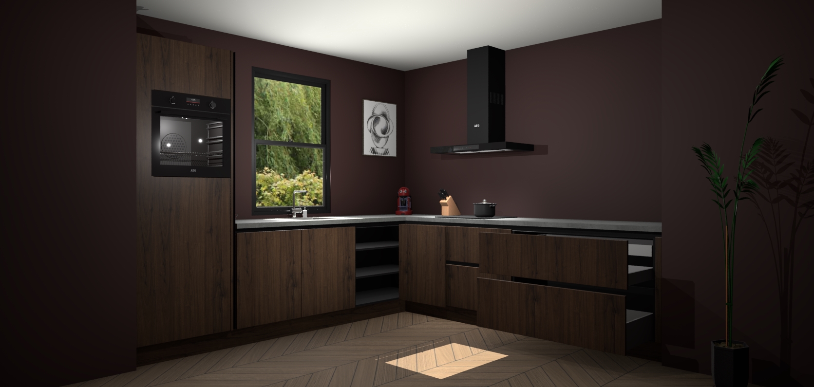 Welkom bij de noten greeploze keuken Lublin. Deze prachtige keuken zal de komende jaren het middelpunt van de belangstelling in uw huis zijn. Uitgerust met vijf inbouwapparaten komt u nooit kookgereedschap tekort. Bovendien geeft de warme houtlook elke ruimte een uitnodigende en tijdloze uitstraling.