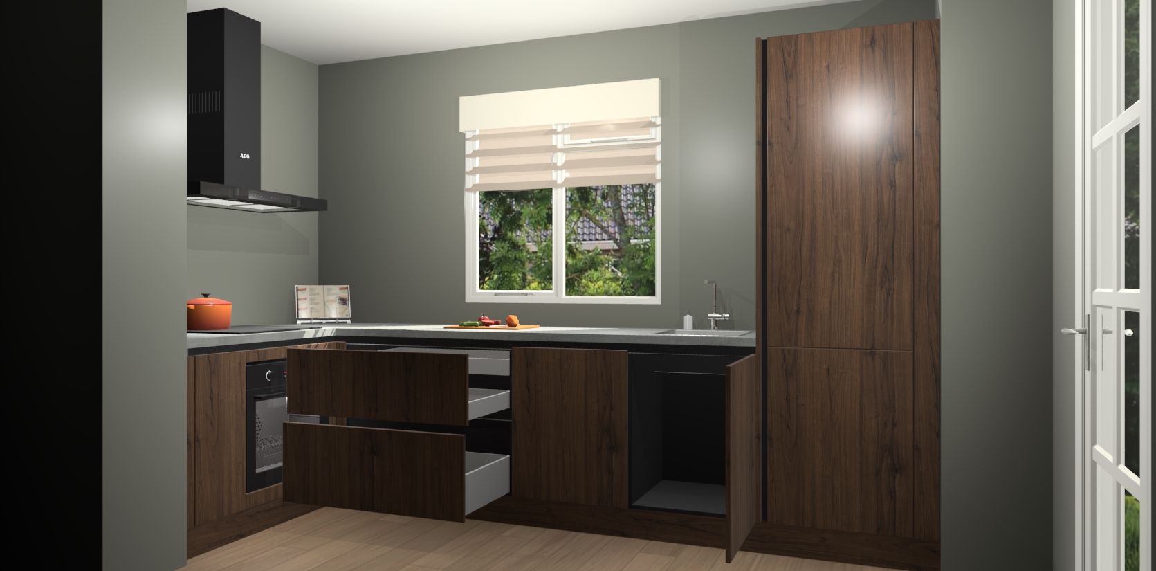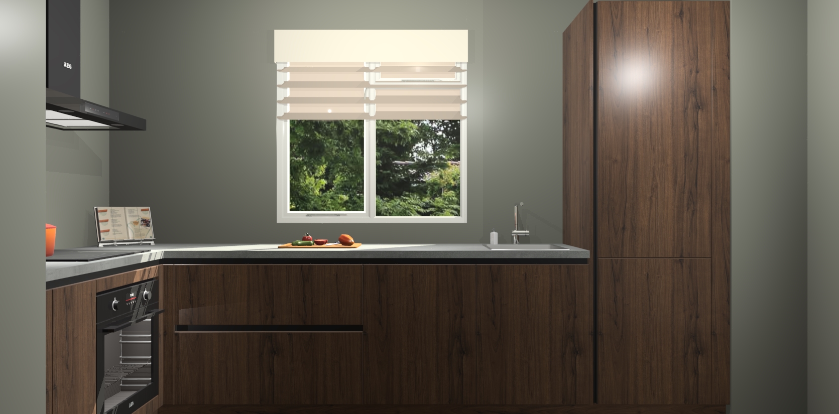 Moedige modernisten! De Noten greeploze keuken Luzern is het perfecte antwoord op al uw keukendromen. Dit geraffineerde, tijdloze ontwerp combineert strakke greeploze kasten zodat u die dure look krijgt zonder het dure prijskaartje. We weten dat planning en uitvoering de sleutels zijn tot een geslaagde keukenrenovatie, dus hebben we ervoor gezorgd dat we vijf inbouwapparaten in ons pakket hebben: een oven, inductiekookplaat, afzuigkap, vaatwasser en koelkast. Deze kunnen na bestelling gemakkelijk worden uitgebreid voor nog meer gemak.