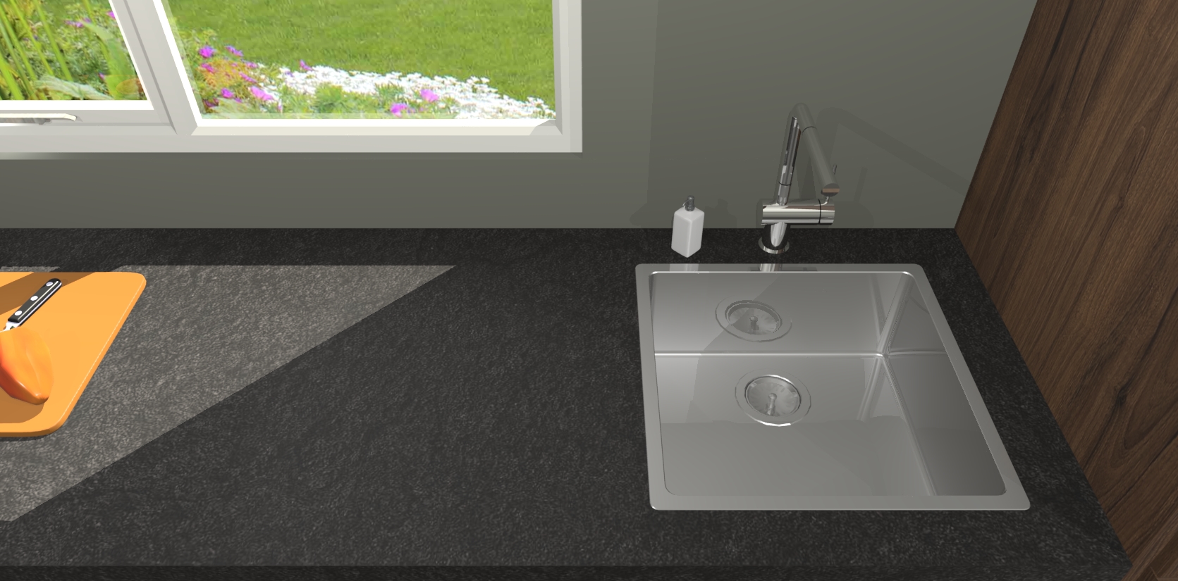 - De spoelbak is nog niet in gevreesd. Dit dient tijdens het werk gedaan te worden
