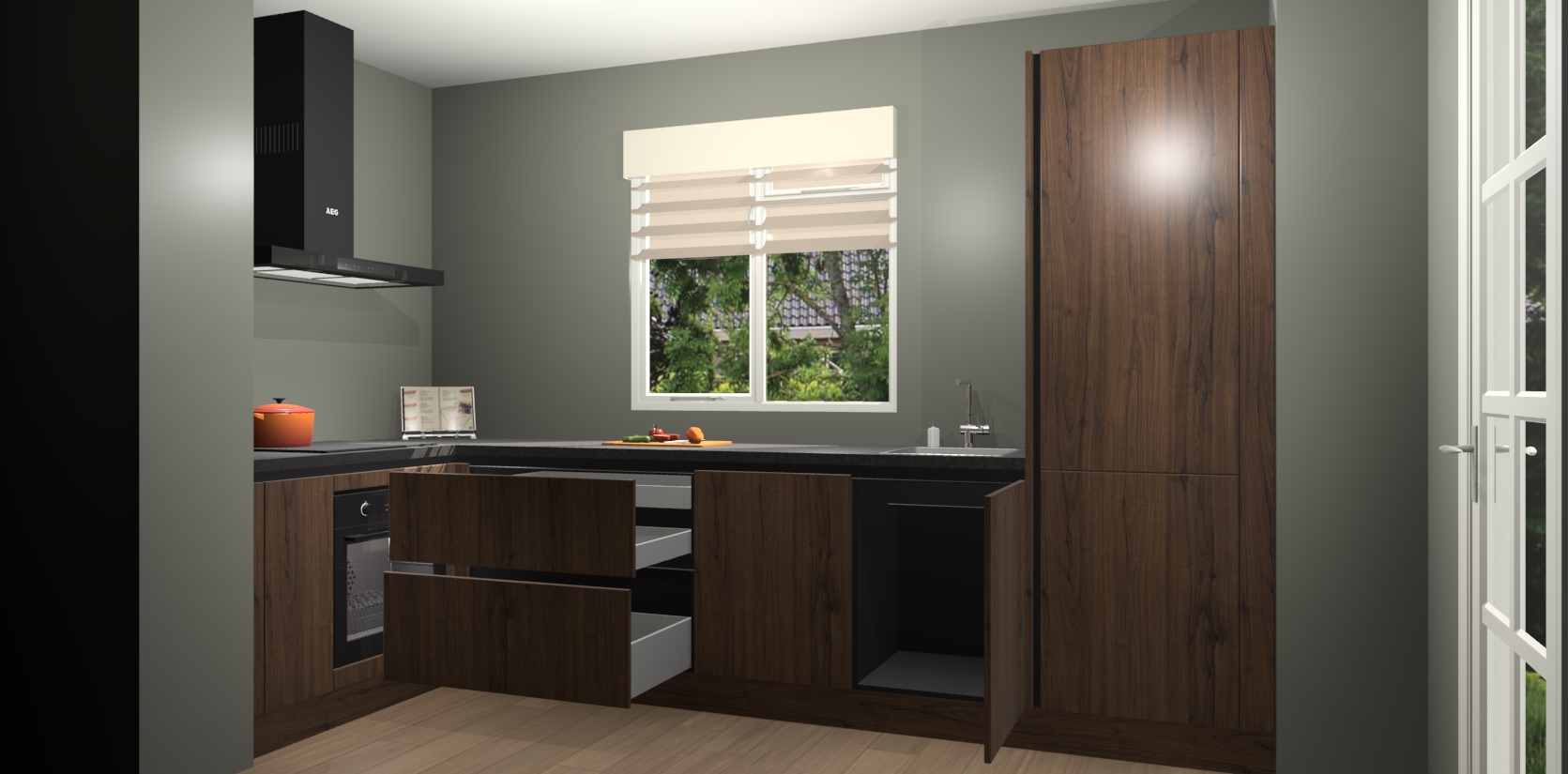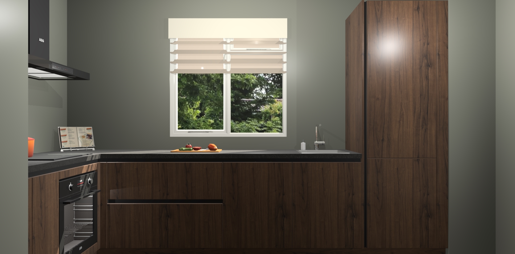 Moedige modernisten! De Noten greeploze keuken Luzern is het perfecte antwoord op al uw keukendromen. Dit geraffineerde, tijdloze ontwerp combineert strakke greeploze kasten zodat u die dure look krijgt zonder het dure prijskaartje. We weten dat planning en uitvoering de sleutels zijn tot een geslaagde keukenrenovatie, dus hebben we ervoor gezorgd dat we vijf inbouwapparaten in ons pakket hebben: een oven, inductiekookplaat, afzuigkap, vaatwasser en koelkast. Deze kunnen na bestelling gemakkelijk worden uitgebreid voor nog meer gemak.