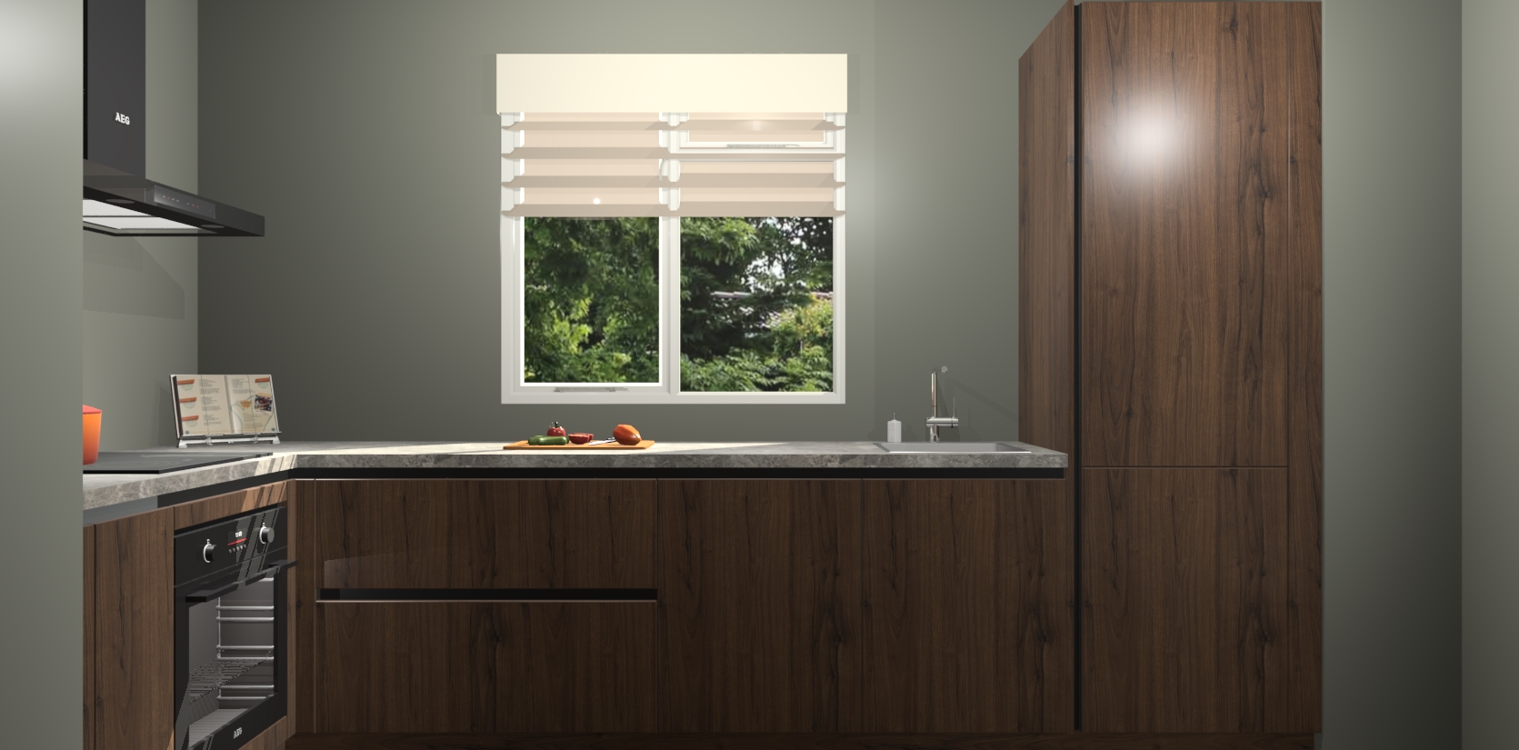 Moedige modernisten! De Noten greeploze keuken Luzern is het perfecte antwoord op al uw keukendromen. Dit geraffineerde, tijdloze ontwerp combineert strakke greeploze kasten zodat u die dure look krijgt zonder het dure prijskaartje. We weten dat planning en uitvoering de sleutels zijn tot een geslaagde keukenrenovatie, dus hebben we ervoor gezorgd dat we vijf inbouwapparaten in ons pakket hebben: een oven, inductiekookplaat, afzuigkap, vaatwasser en koelkast. Deze kunnen na bestelling gemakkelijk worden uitgebreid voor nog meer gemak.