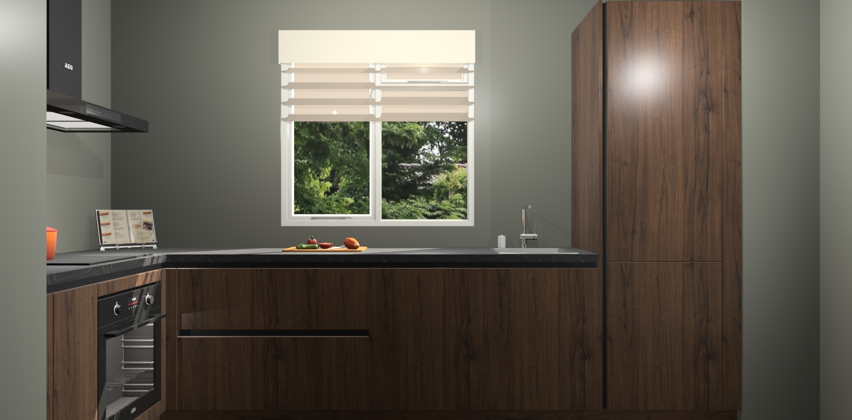 Moedige modernisten! De Noten greeploze keuken Luzern is het perfecte antwoord op al uw keukendromen. Dit geraffineerde, tijdloze ontwerp combineert strakke greeploze kasten zodat u die dure look krijgt zonder het dure prijskaartje. We weten dat planning en uitvoering de sleutels zijn tot een geslaagde keukenrenovatie, dus hebben we ervoor gezorgd dat we vijf inbouwapparaten in ons pakket hebben: een oven, inductiekookplaat, afzuigkap, vaatwasser en koelkast. Deze kunnen na bestelling gemakkelijk worden uitgebreid voor nog meer gemak.