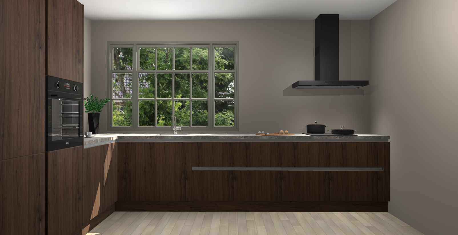Kom dichtbij de perfecte keuken van uw dromen met de Noten greeploze keuken Malaga. Met een prachtige houtlook en eigentijds ontwerp, straalt deze keuken warmte en sfeer uit. Of u nu liefhebber bent van traditionele of moderne stijlen, er is genoeg ruimte om aan al uw behoeften te voldoen.