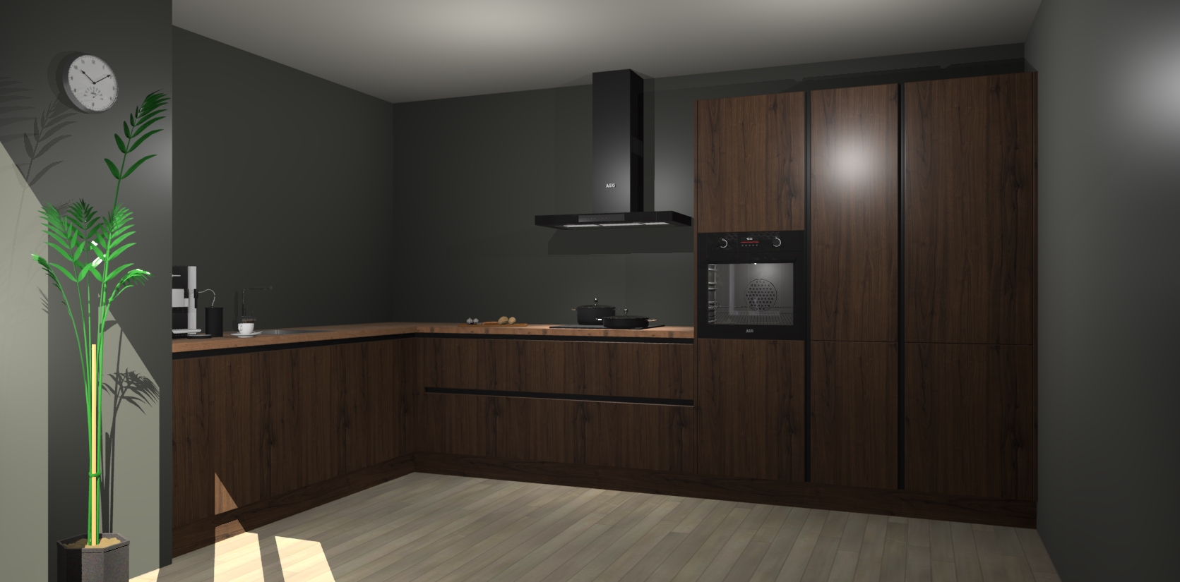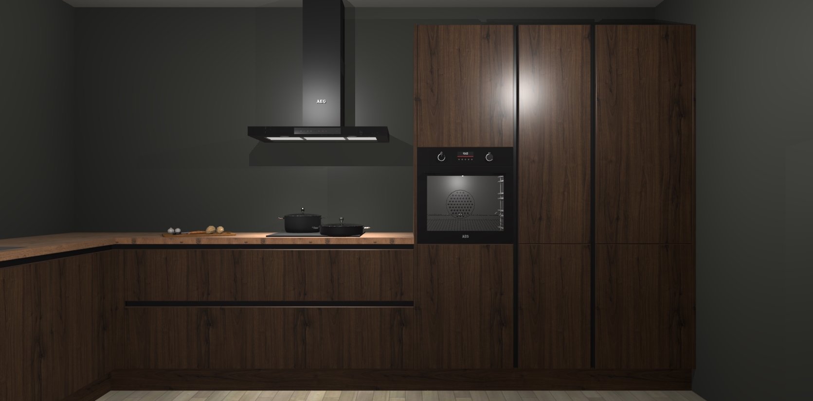Welkom bij de noten greeploze keuken Nuuk. Deze prachtige keuken zal de komende jaren het middelpunt van de belangstelling in uw huis zijn. Uitgerust met vijf inbouwapparaten komt u nooit kookgereedschap tekort.