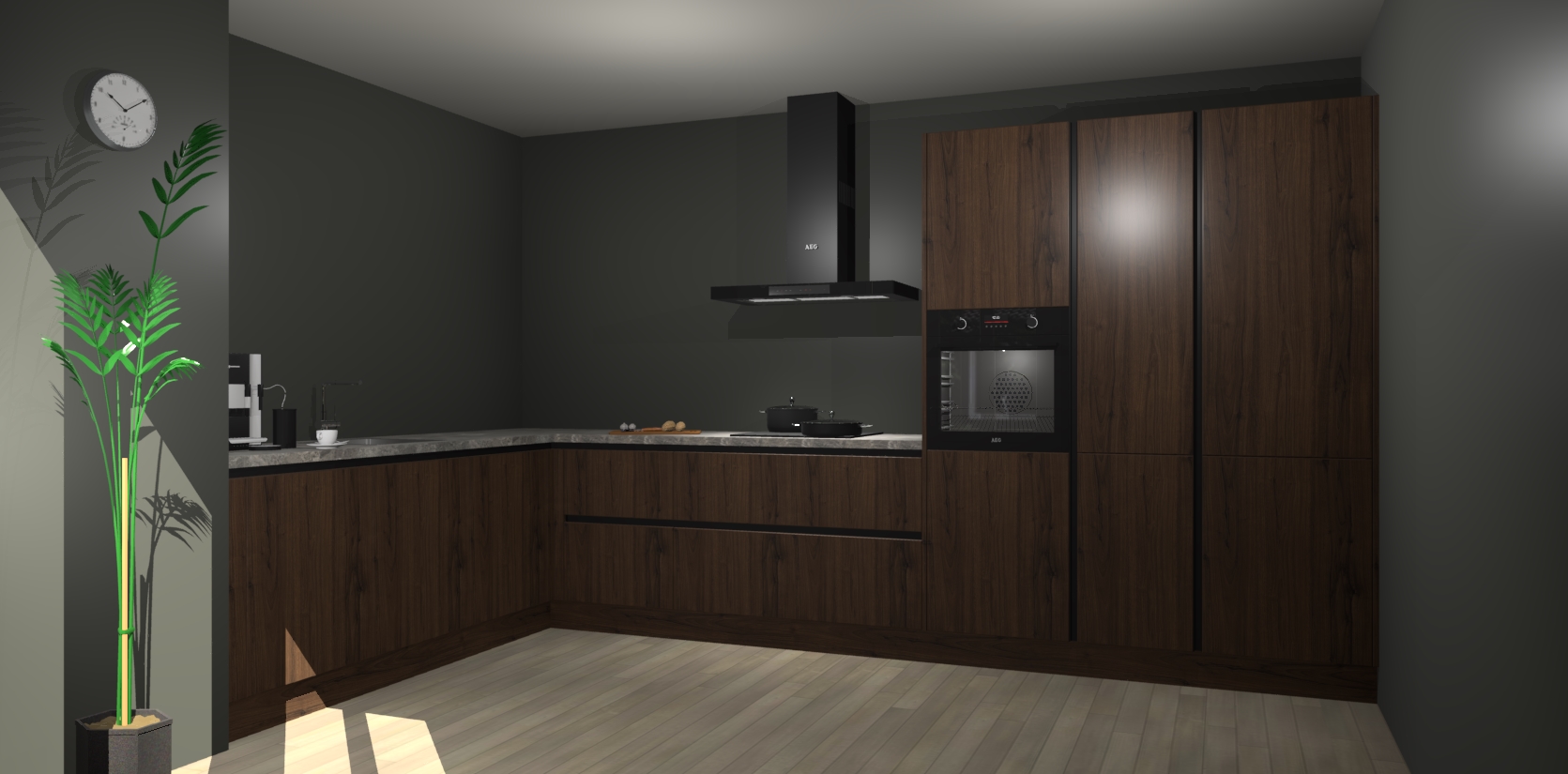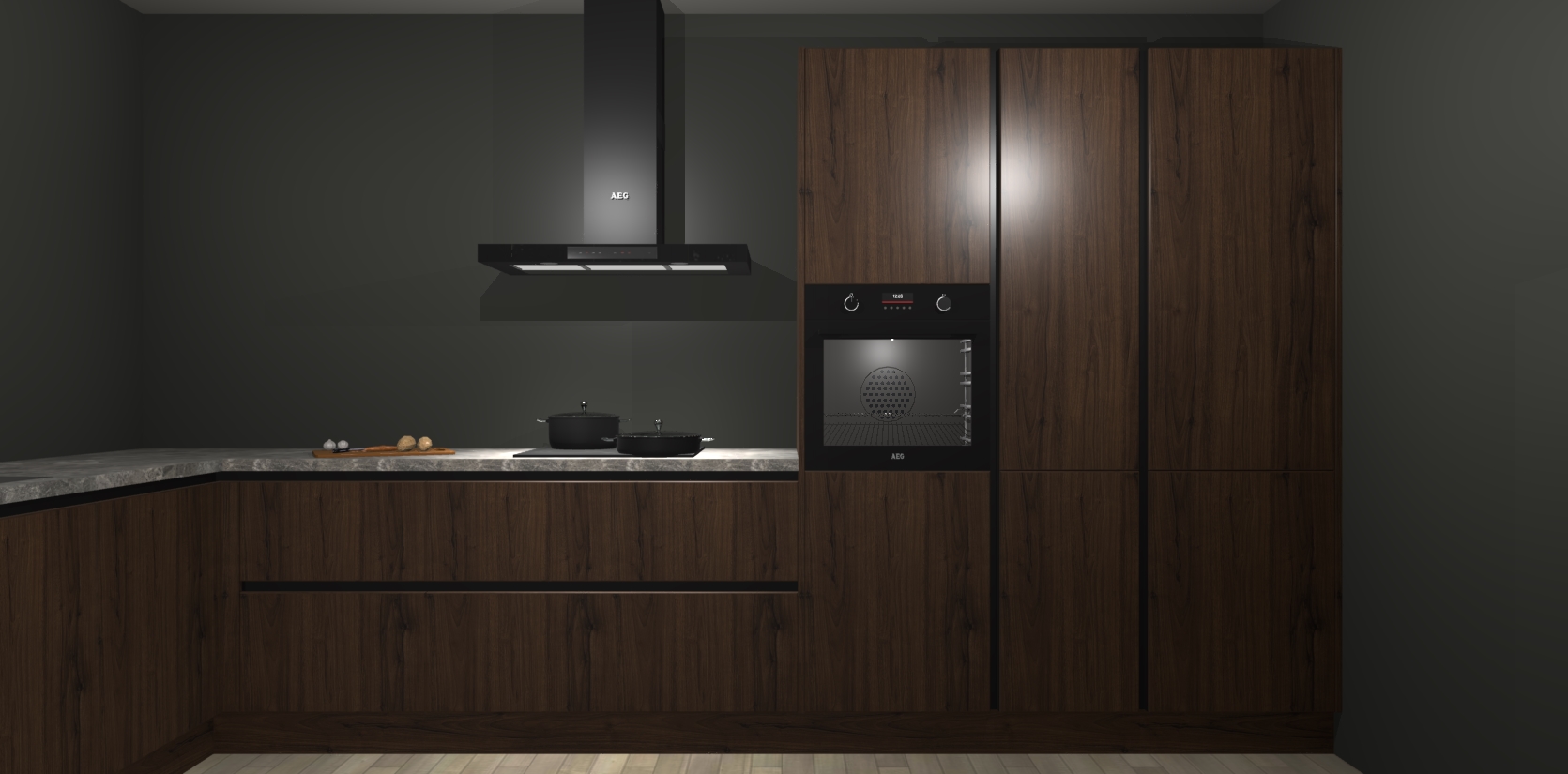 Welkom bij de noten greeploze keuken Nuuk. Deze prachtige keuken zal de komende jaren het middelpunt van de belangstelling in uw huis zijn. Uitgerust met vijf inbouwapparaten komt u nooit kookgereedschap tekort.