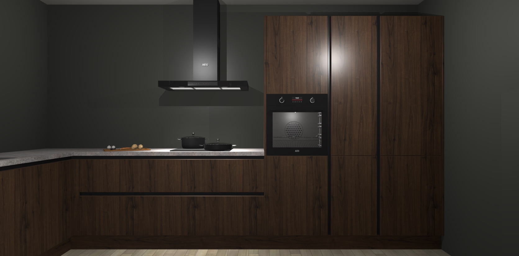Welkom bij de noten greeploze keuken Nuuk. Deze prachtige keuken zal de komende jaren het middelpunt van de belangstelling in uw huis zijn. Uitgerust met vijf inbouwapparaten komt u nooit kookgereedschap tekort.