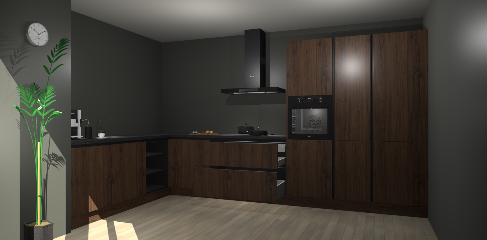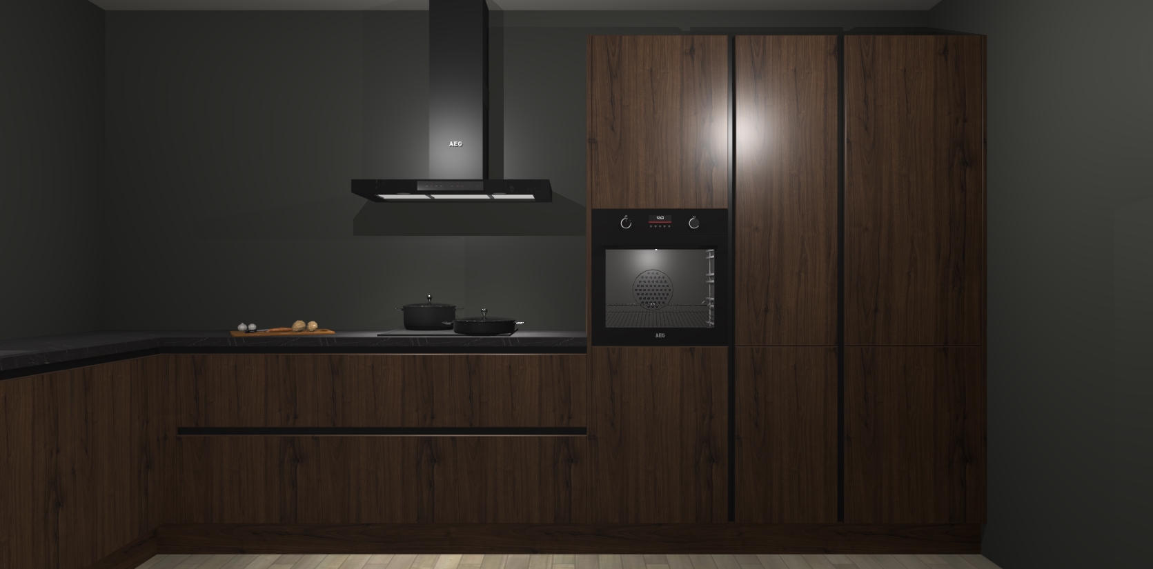 Welkom bij de noten greeploze keuken Nuuk. Deze prachtige keuken zal de komende jaren het middelpunt van de belangstelling in uw huis zijn. Uitgerust met vijf inbouwapparaten komt u nooit kookgereedschap tekort.