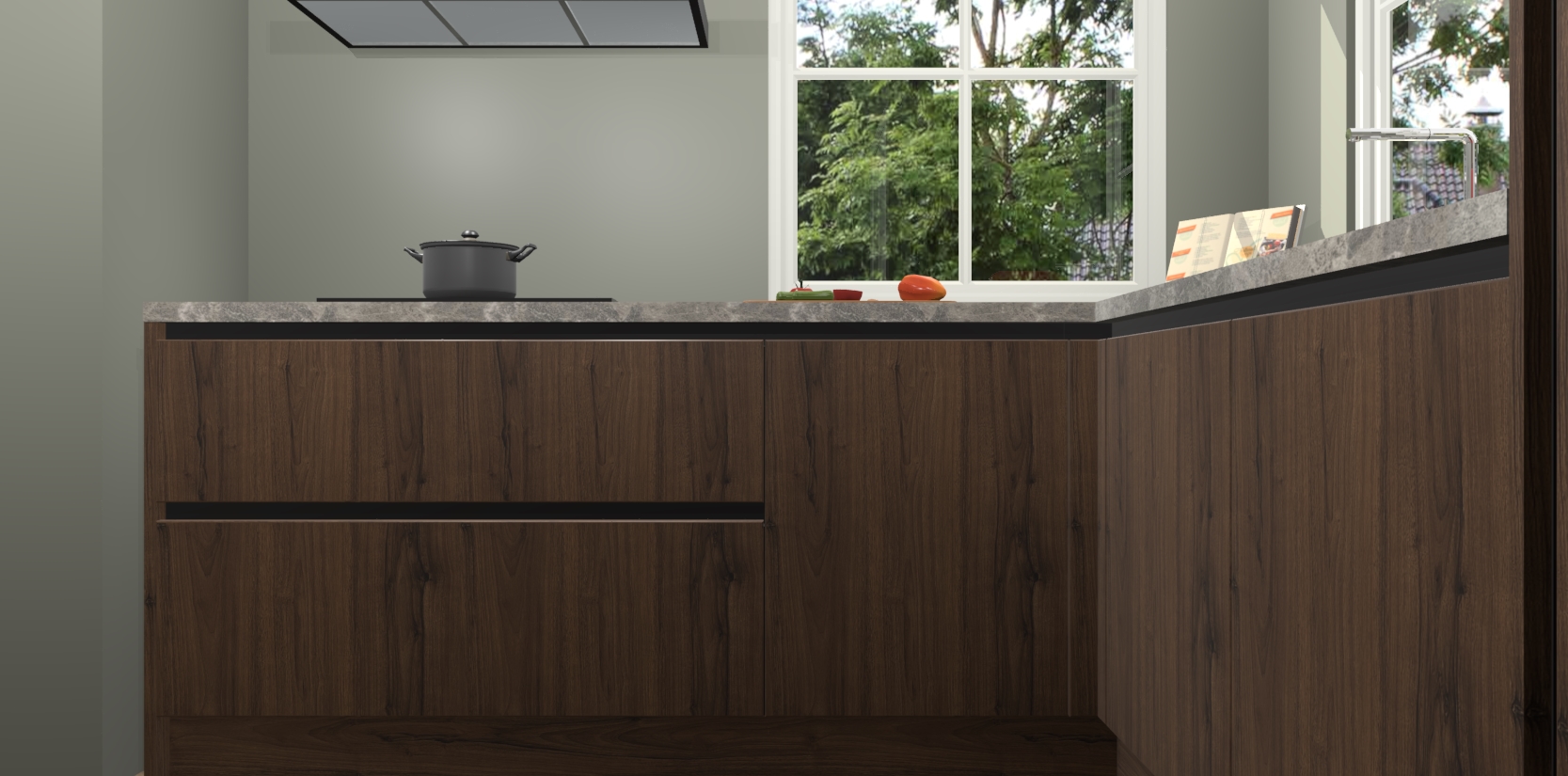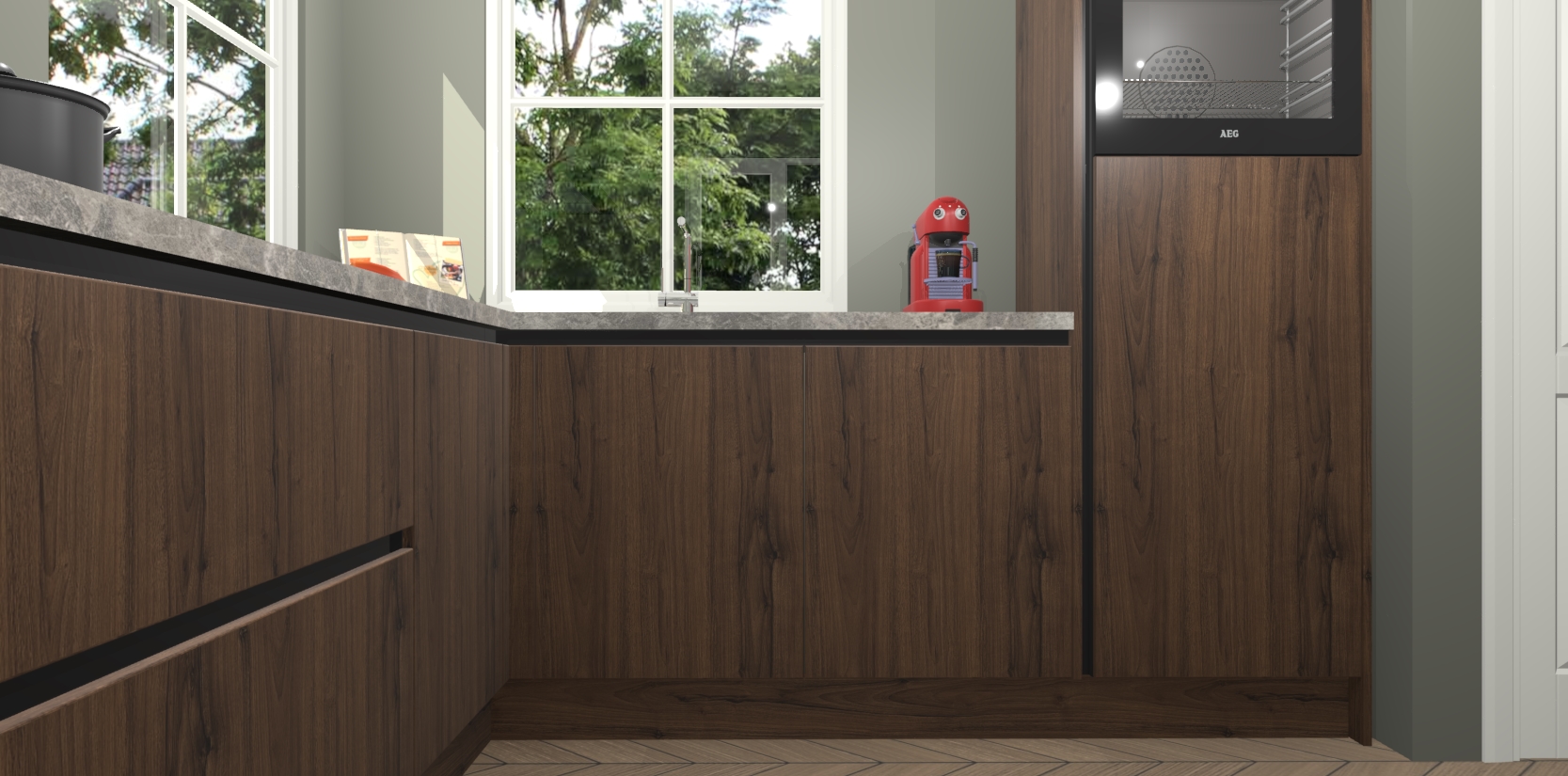 Maak kennis met de Noten greeploze keuken Pai: de perfecte keukenoplossing voor stijlzoekers die streven naar zowel schoonheid als een lange levensduur in hun huis. Dit tijdloze ontwerp is modern en verfijnd, waardoor het een prachtige aanvulling is op elke leefruimte.