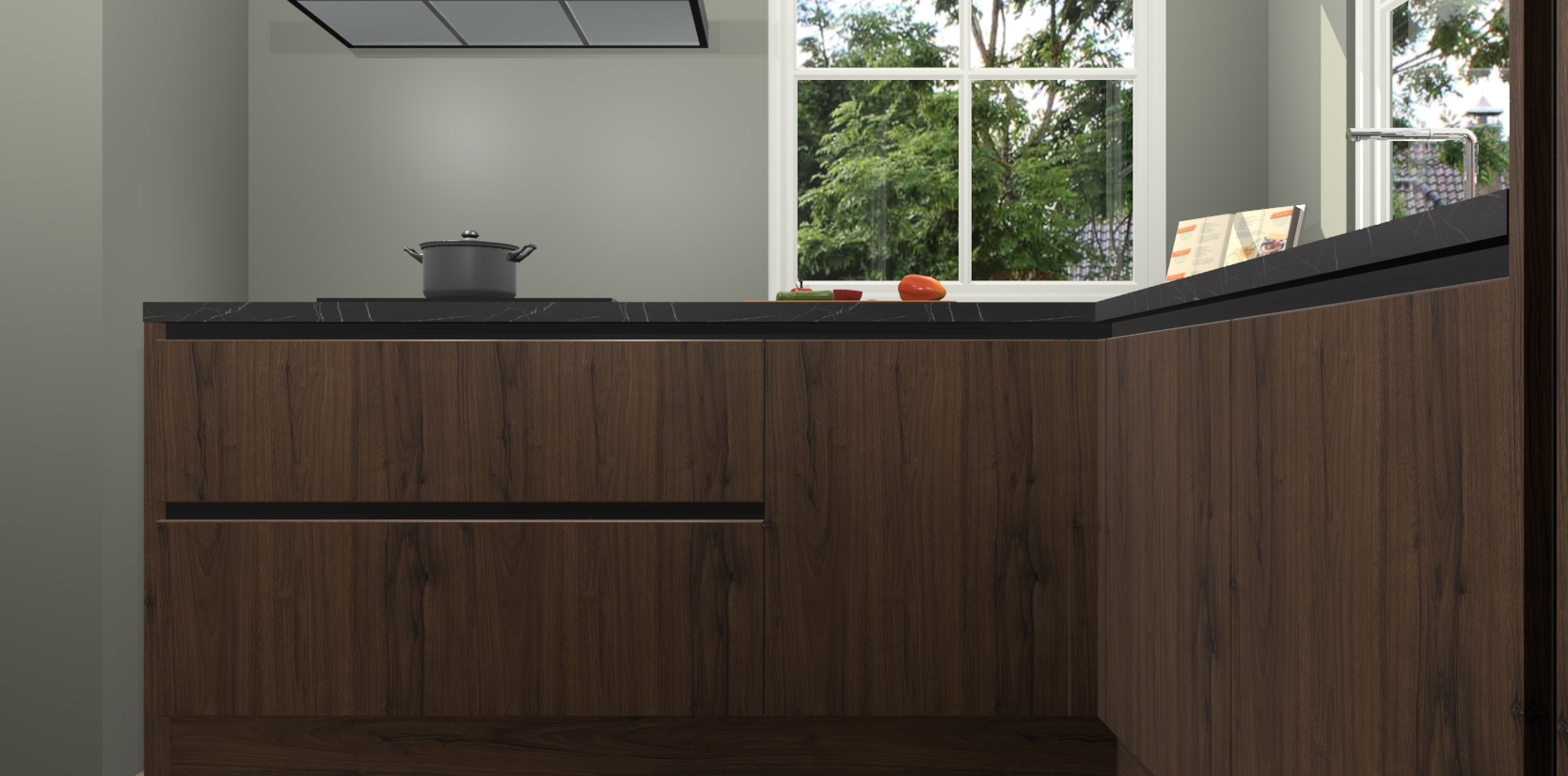 In deze box zijn alle kleuren verzameld van de deuren en werkbladen. Vraag de gratis kleurenbox aan en kijk thuis rustig verder!