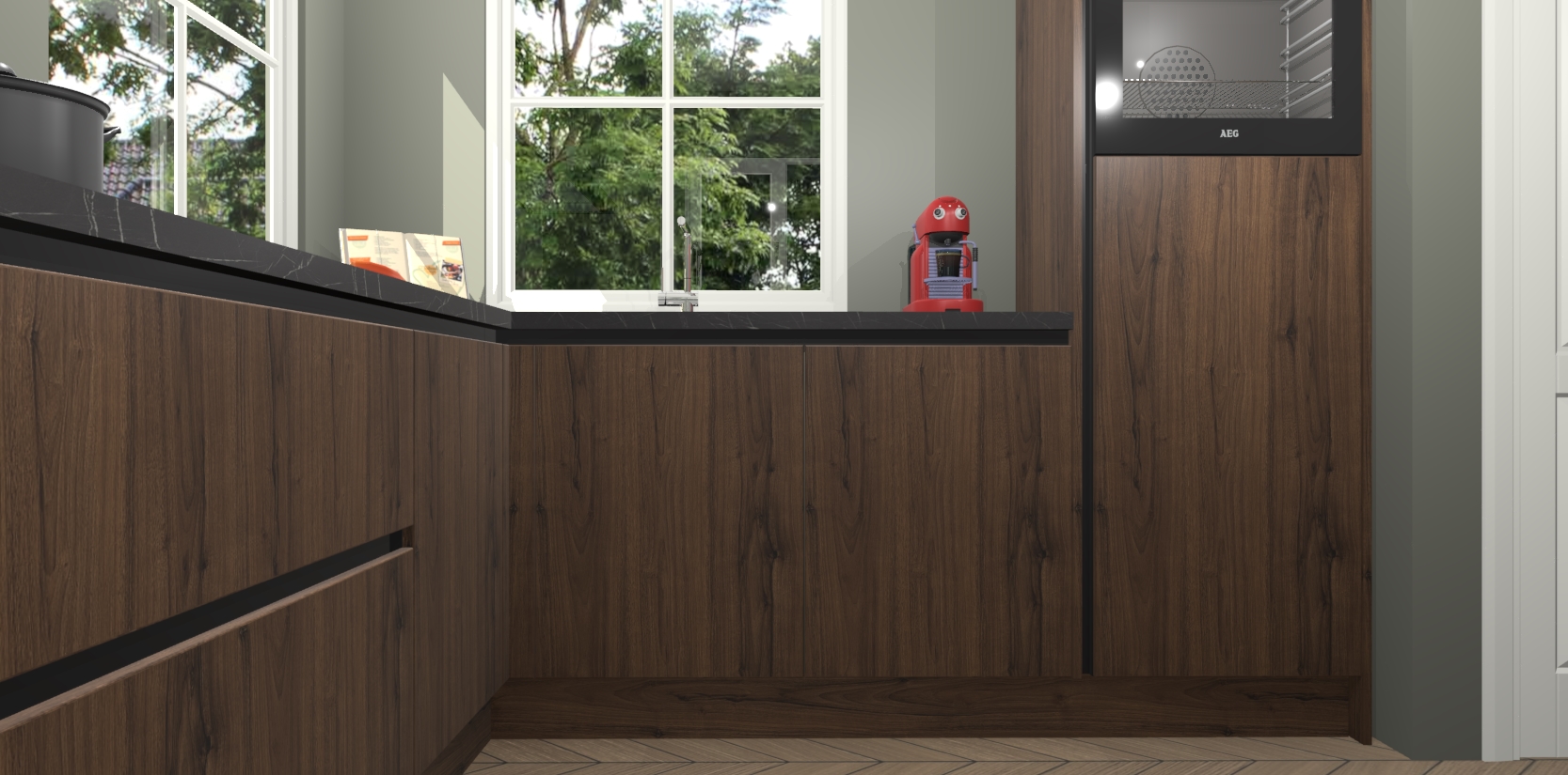 De Noten greeploze keuken Pai bevat vijf essentiële inbouwapparaten - een oven, inductiekookplaat, afzuigkap, vaatwasser en koelkast - zodat u er na levering meteen in kunt. Voor de slimme kopers die weten dat apparaten vaak het verschil kunnen maken tussen functioneel en luxueus, bieden we eenvoudige upgradeopties naar AEG, van oven naar combimagnetron na bestelling of naar een kookplaat met geïntrigeerde afzuiging. En met onze vaste lage prijs en snelle levering binnen zeven weken vanaf de orderbevestiging hoeft u zich geen zorgen te maken over verborgen kosten of lange levertijden die uw droomkeuken kunnen vertragen.