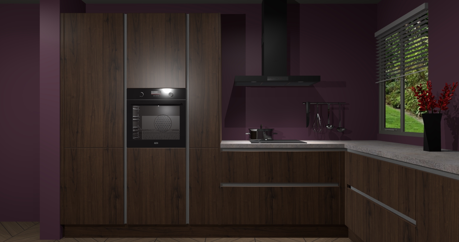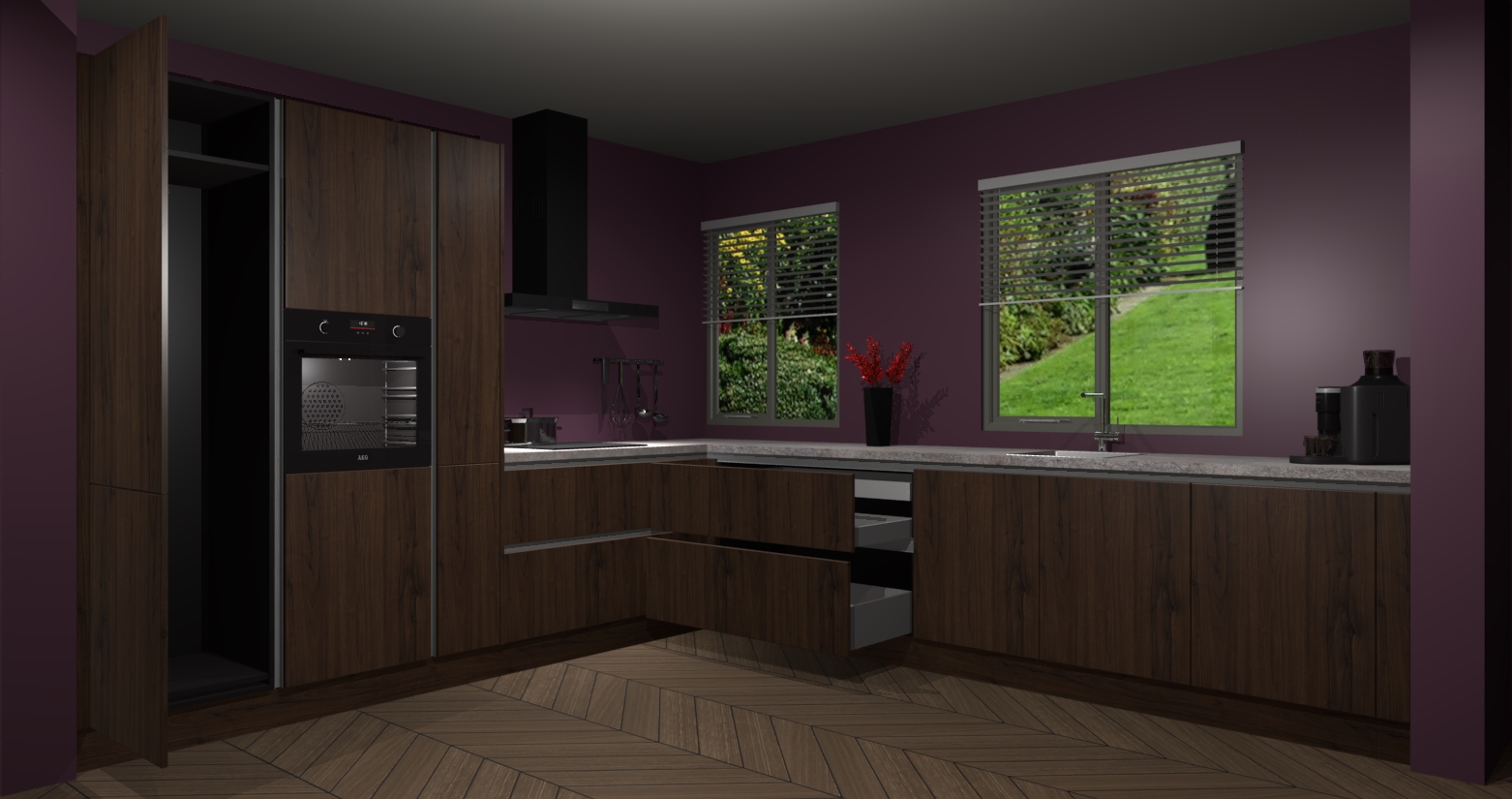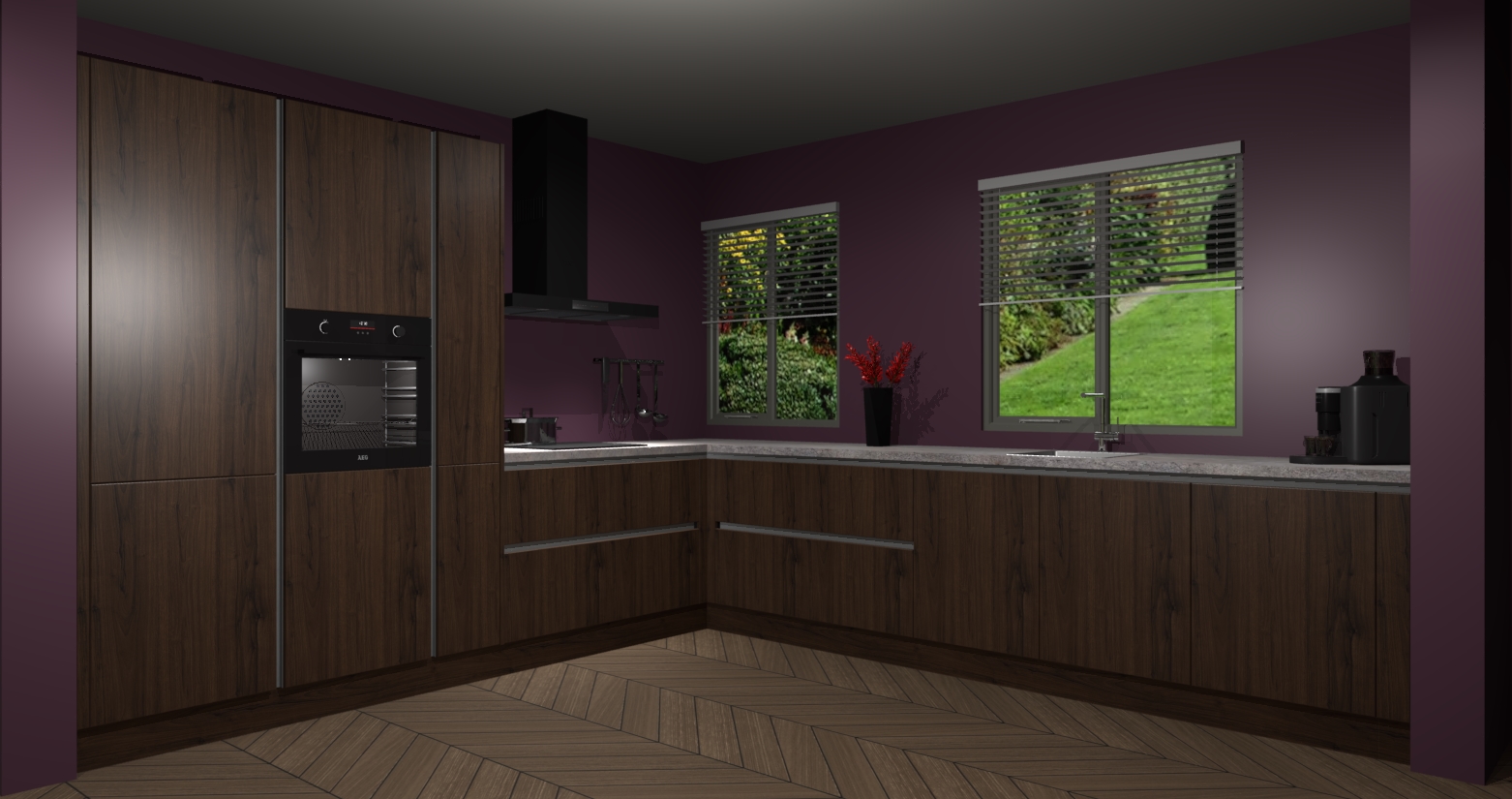 Welkom bij de Noten keuken Palermo. Deze prachtige keuken zal de komende jaren het middelpunt van de belangstelling in uw huis zijn. Uitgerust met vijf inbouwapparaten komt u nooit kookgereedschap tekort. Bovendien geeft de warme houtlook elke ruimte een uitnodigende en tijdloze uitstraling.
