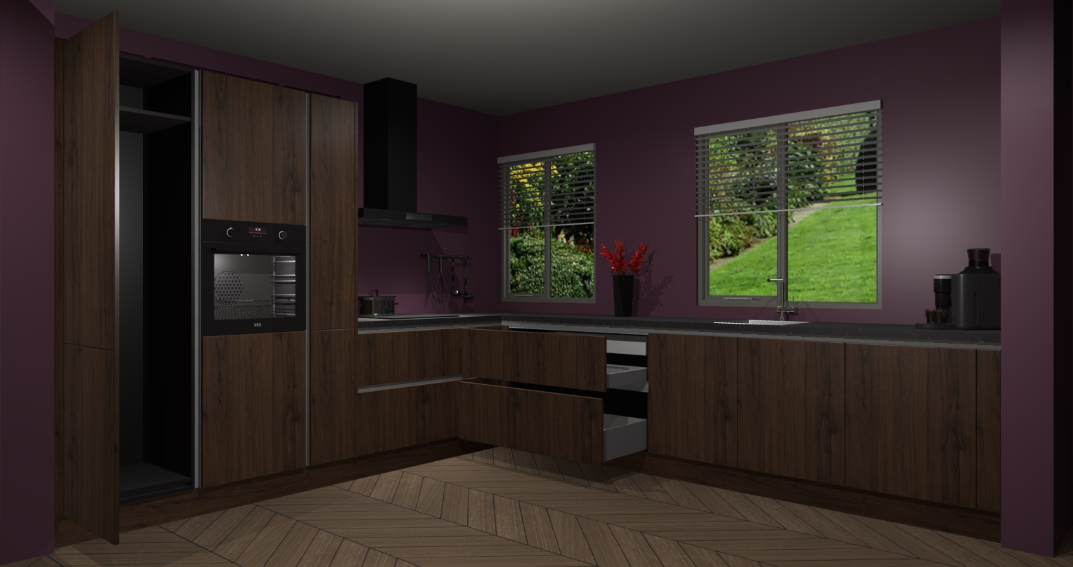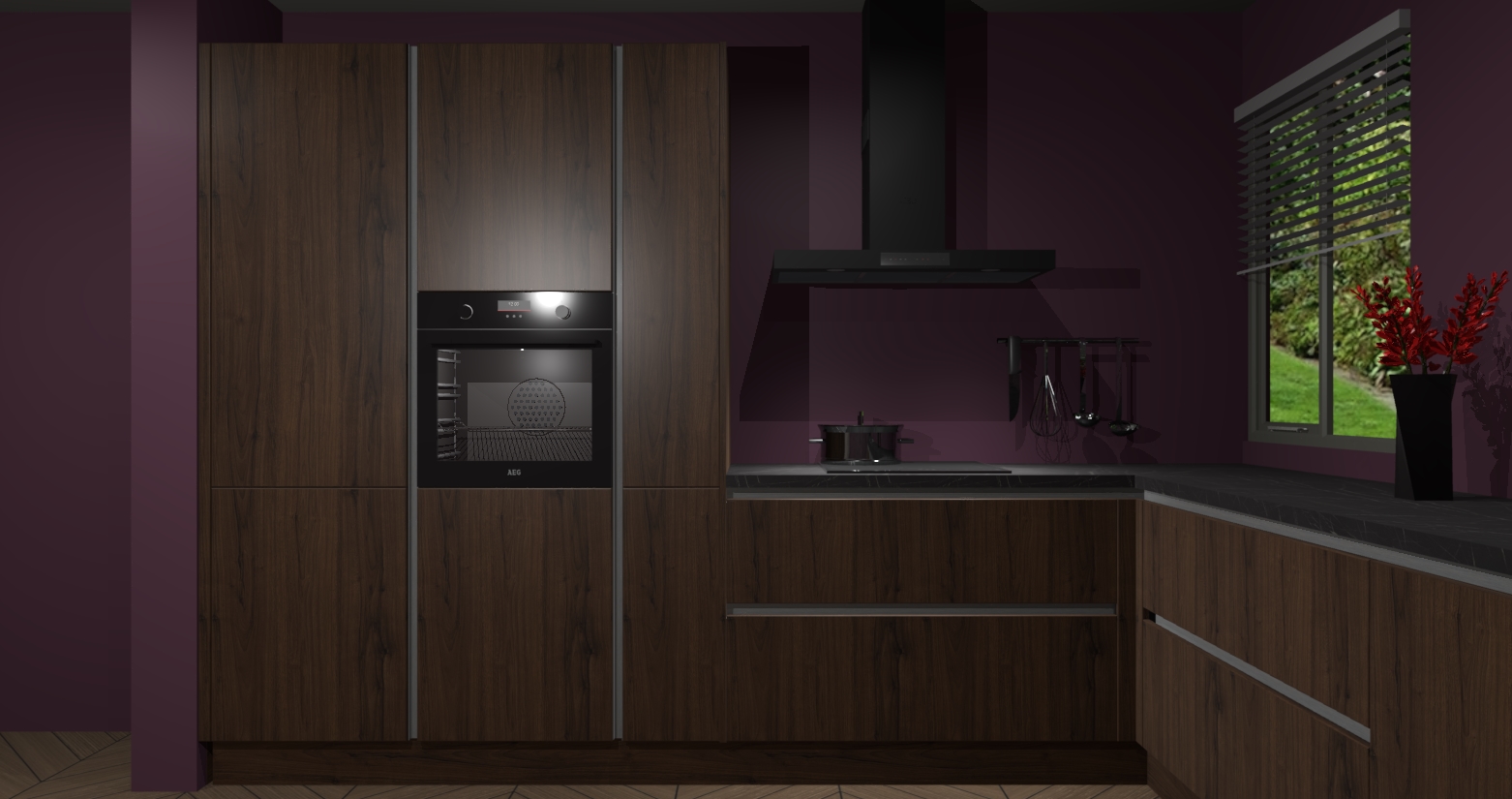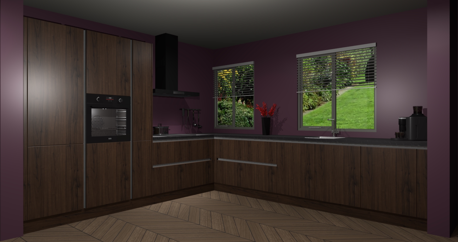 Welkom bij de Noten keuken Palermo. Deze prachtige keuken zal de komende jaren het middelpunt van de belangstelling in uw huis zijn. Uitgerust met vijf inbouwapparaten komt u nooit kookgereedschap tekort. Bovendien geeft de warme houtlook elke ruimte een uitnodigende en tijdloze uitstraling.