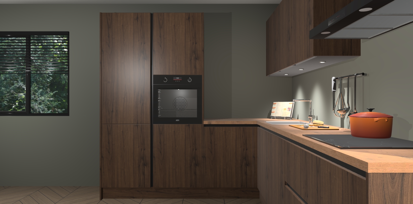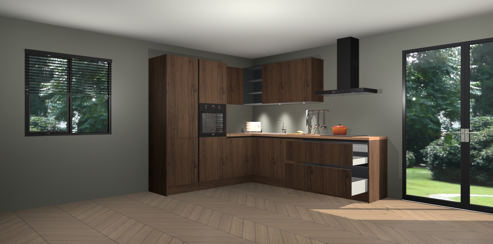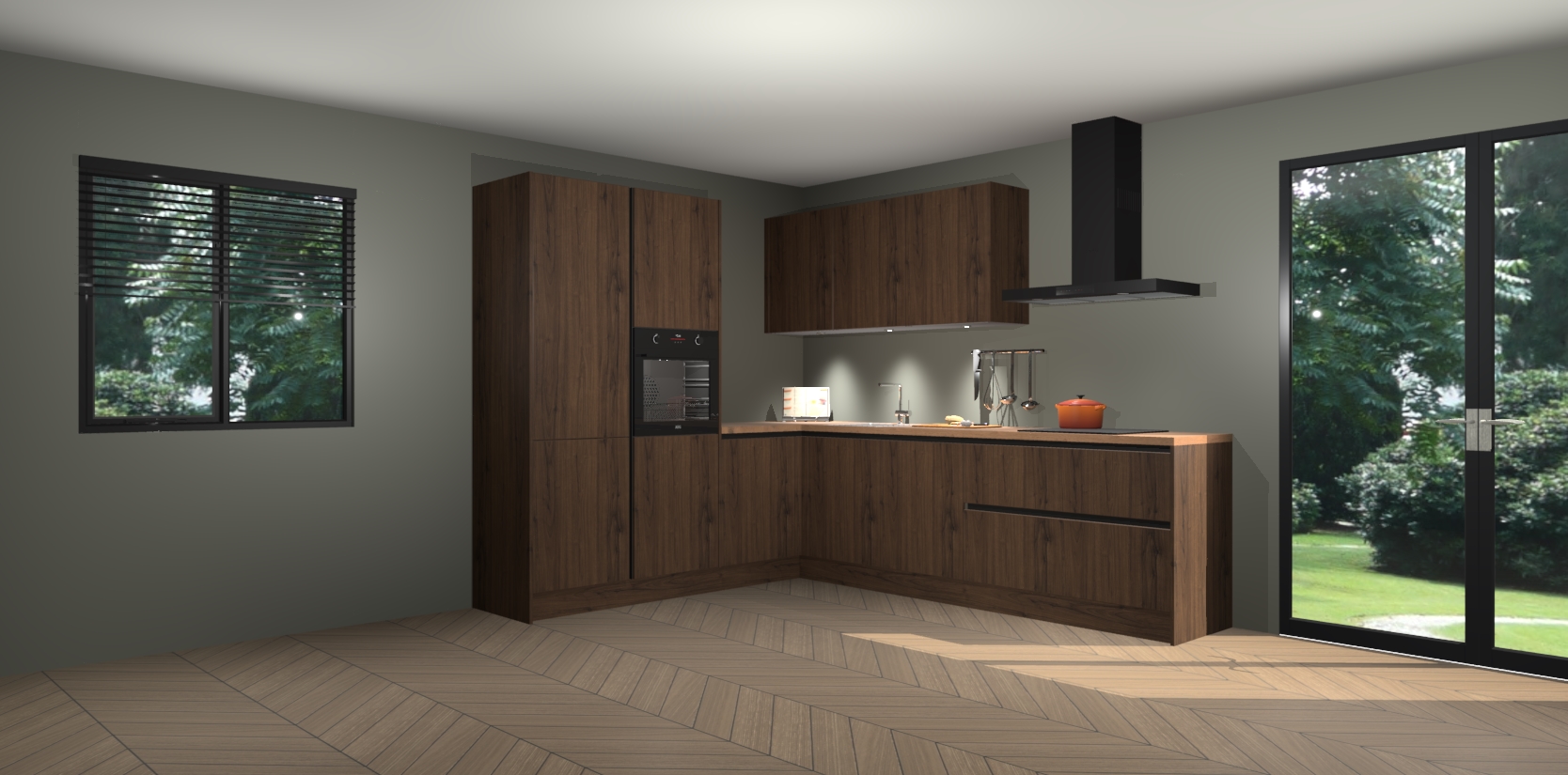 Maak kennis met de noten greeploze keuken Parla - de perfecte aanvulling voor uw moderne keuken! Ervaar tijdloos design, elegantie en een chique uitstraling met onze zwarte handgrepen, soft-close deuren en veel opbergruimte. Dit alles wordt aangeboden tegen een vaste lage prijs voor ongeëvenaarde Duitse keukenkwaliteit!