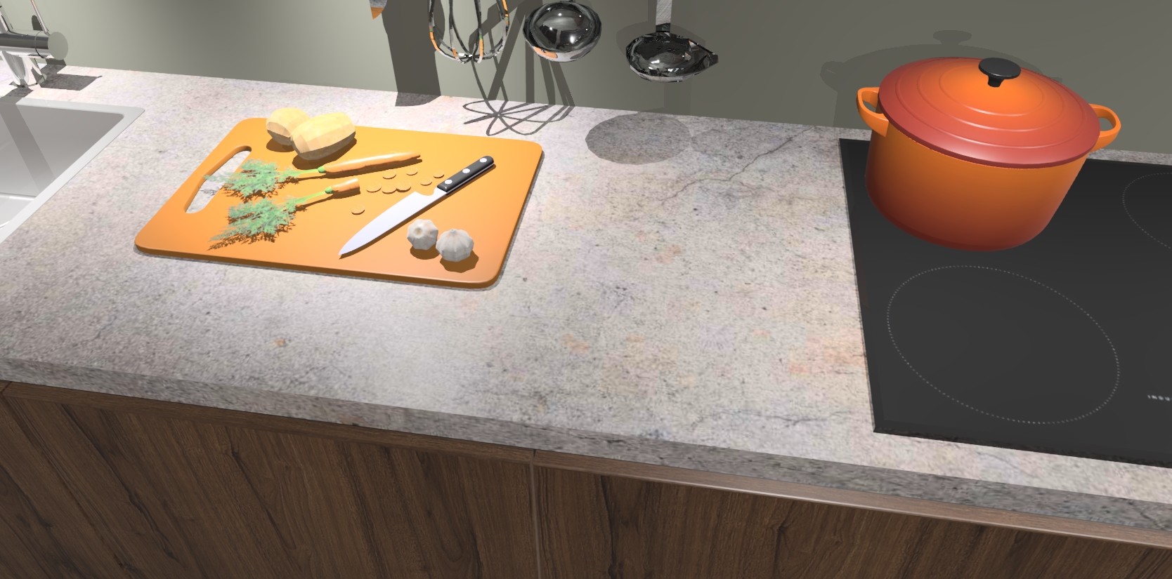 - Uitsparing van kookplaat, spoelbak en kraan dient u zelf te verzorgen.