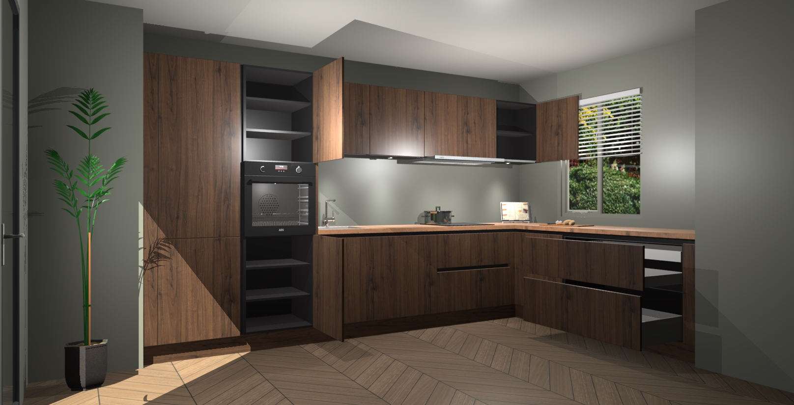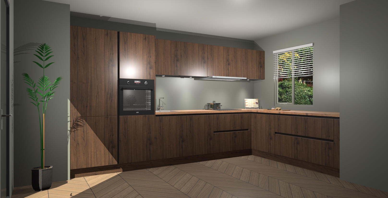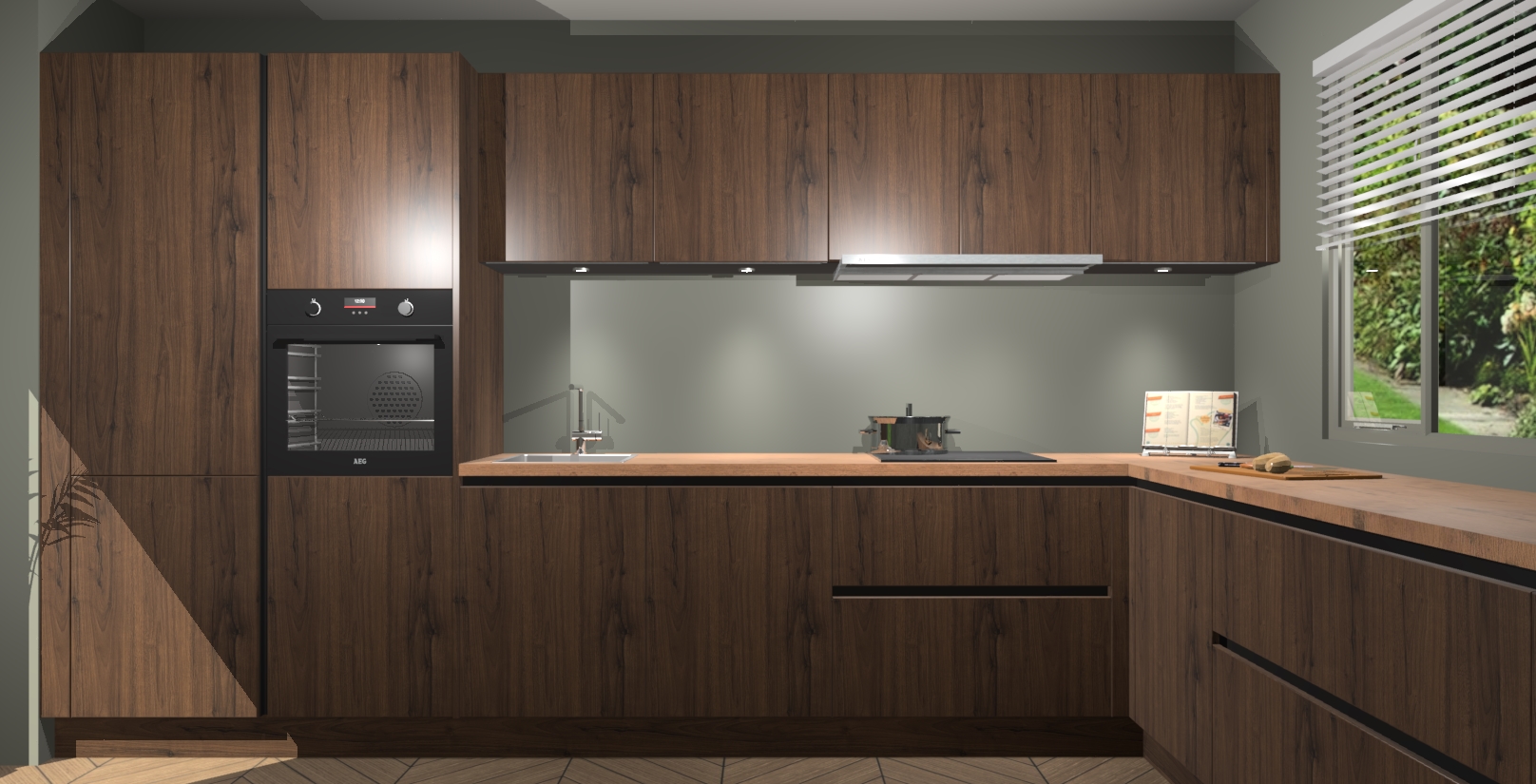 Verwelkom de natuurlijke warmte van de Noten greeploze keuken Petten in uw huis. Deze prachtige hoekkeuken met zijn moderne design en warme houten look geeft u meer dan genoeg opbergruimte om uw comfortabel te voelen in uw keuken. Geniet van soft-close deuren die al uw gasten het gevoel zullen geven dat ze zich in een luxueuze ruimte bevinden.