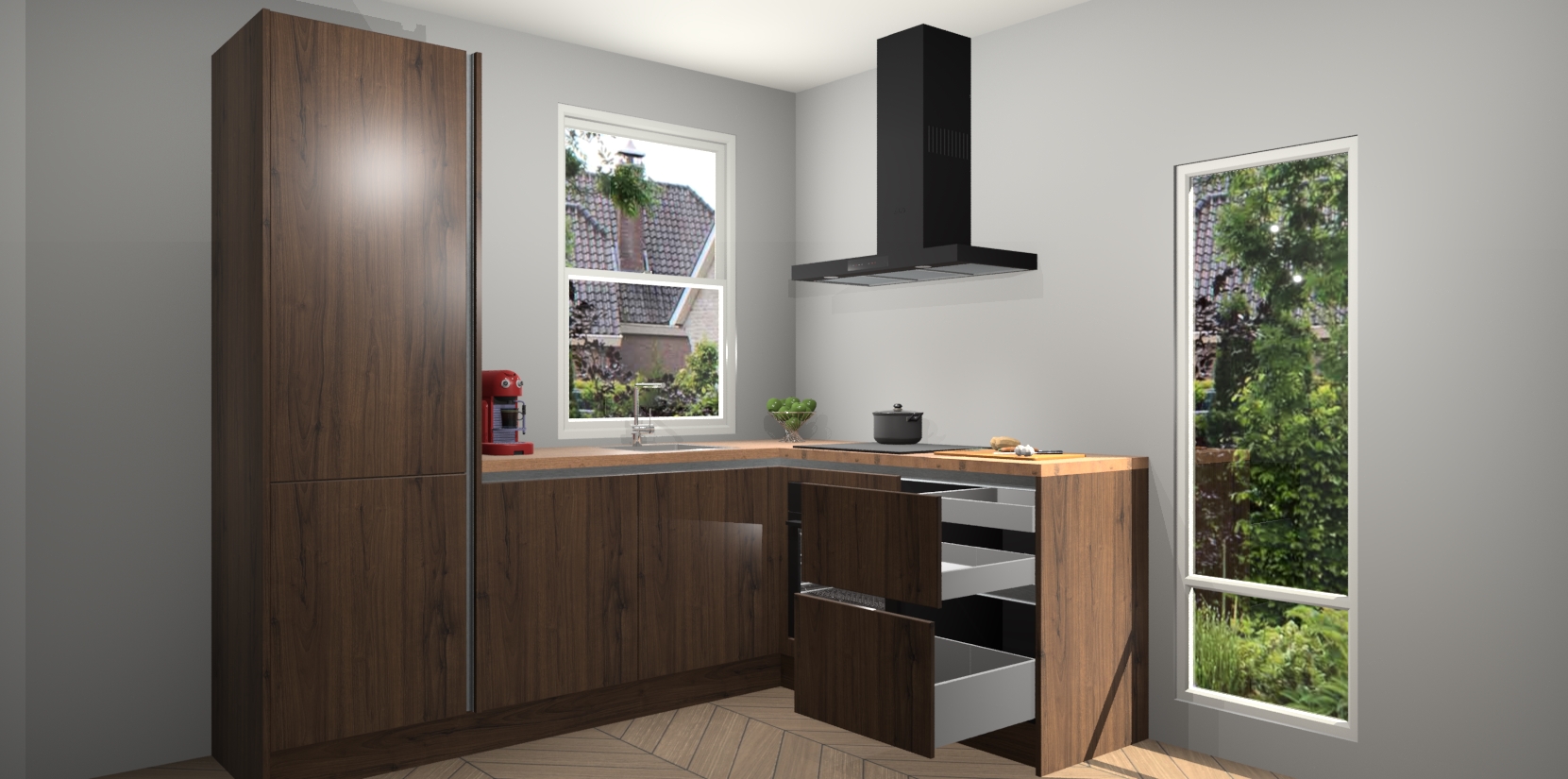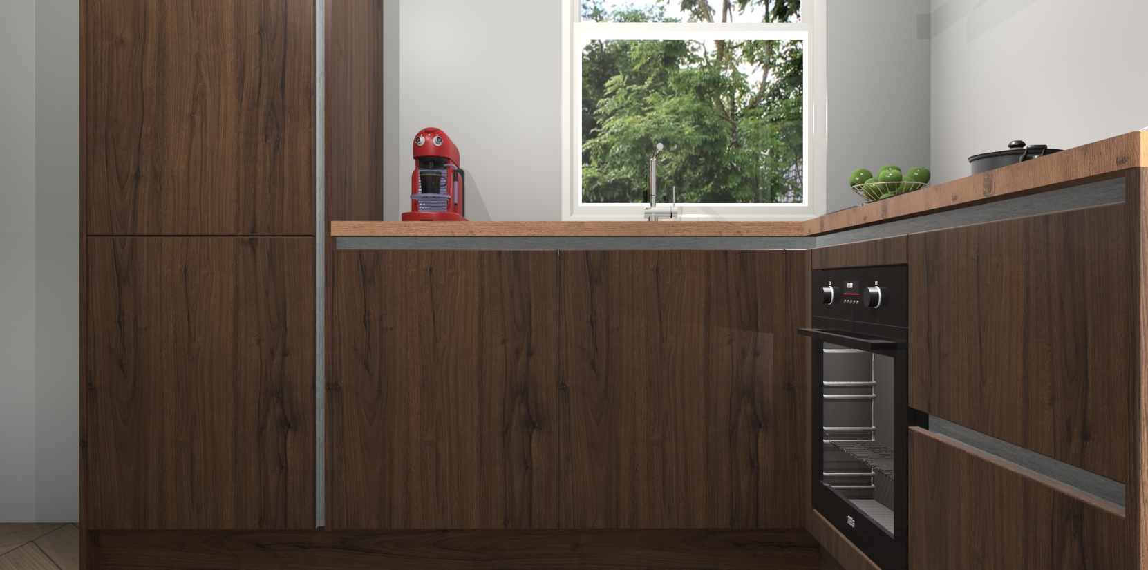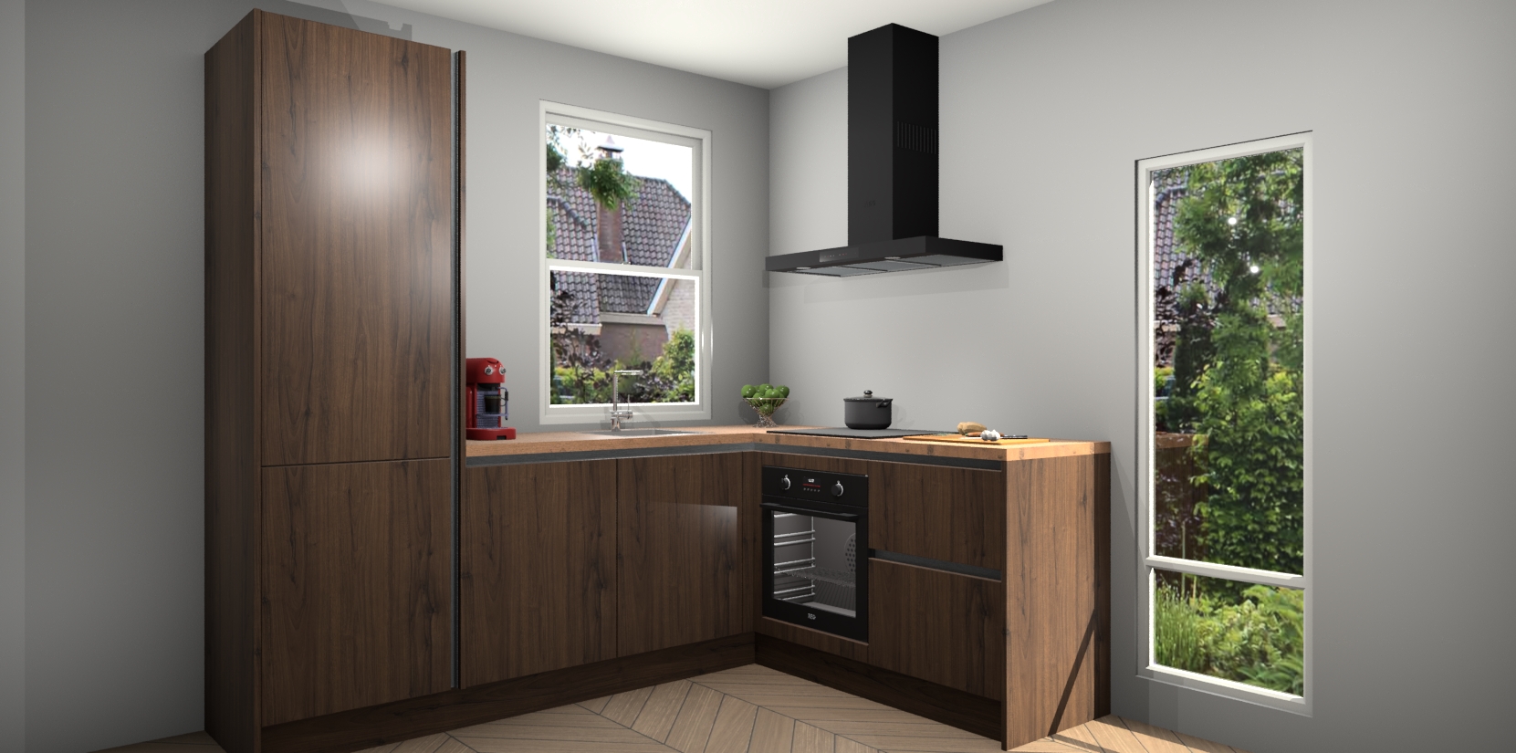De prachtige Noten greeploze keuken Phuket is de perfecte keuze als u op zoek bent naar een moderne hoekkeuken met alle luxe en comfort die u kunt verwachten! De uitstraling in het houtlook-design draagt bij aan de warme sfeer die u nu al voelt wanneer u er naar kijkt. Heeft u genoeg van ouderwetse keukens? Probeer dan direct deze moderne, mooie hoekkeukens en laat iedereen verbluft achter!