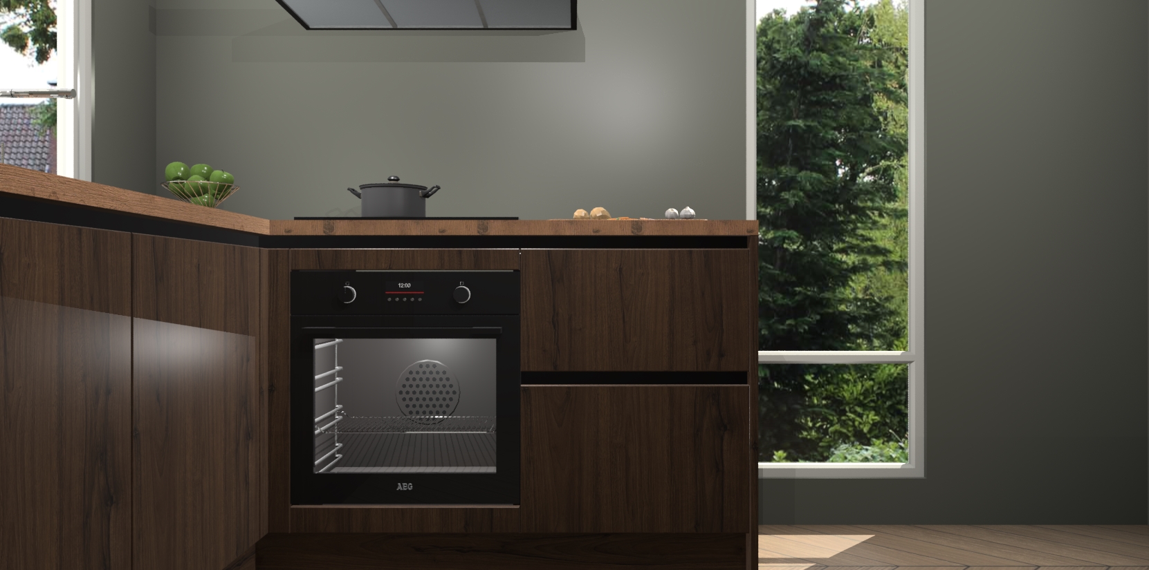 De Noten greeploze keuken Phuket heeft alles wat u maar kunt wensen. Niet alleen zijn er softclose deuren, maar ook 5 ingebouwde apparaten: een oven, inductiekookplaat, afzuigkap, vaatwasser en koelkast - waarbij u later gemakkelijk naar het AEG merk, van inductiekookplaat naar kookplaat met geïntegreerde afzuiging of van oven naar combimagnetron kunt upgraden. Dat alles tegen een vast laag tarief! Bovendien geeft de Noten greeploze keuken Phuket supersnelle levering van 7 weken. Echt iets voor u als u er niet op wilt wachten om het resultaat te zien in eigen keuken!