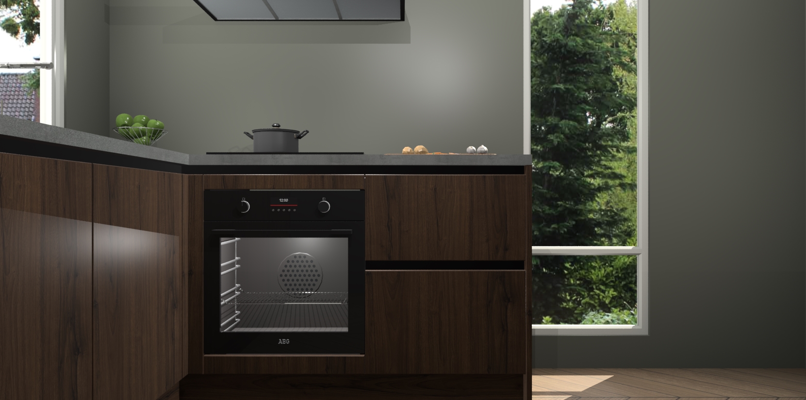 De Noten greeploze keuken Phuket heeft alles wat u maar kunt wensen. Niet alleen zijn er softclose deuren, maar ook 5 ingebouwde apparaten: een oven, inductiekookplaat, afzuigkap, vaatwasser en koelkast - waarbij u later gemakkelijk naar het AEG merk, van inductiekookplaat naar kookplaat met geïntegreerde afzuiging of van oven naar combimagnetron kunt upgraden. Dat alles tegen een vast laag tarief! Bovendien geeft de Noten greeploze keuken Phuket supersnelle levering van 7 weken. Echt iets voor u als u er niet op wilt wachten om het resultaat te zien in eigen keuken!