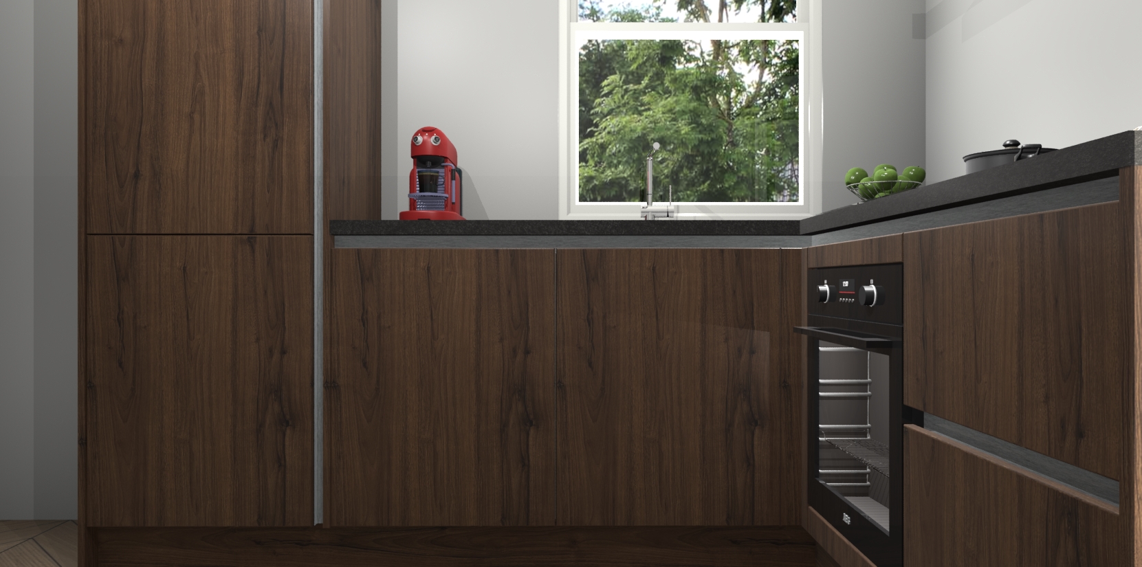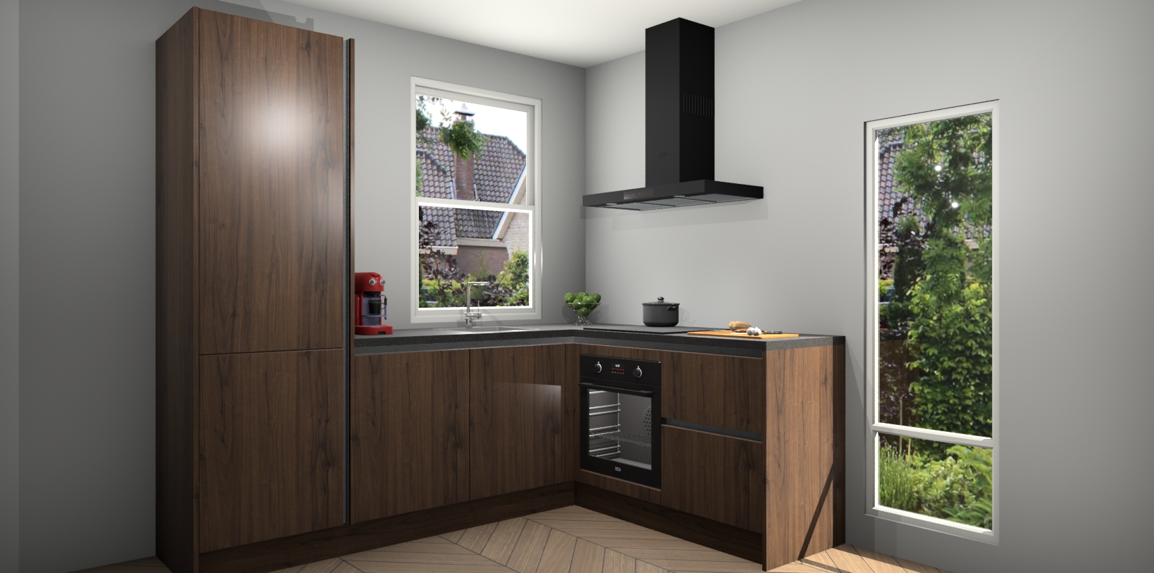 De prachtige Noten greeploze keuken Phuket is de perfecte keuze als u op zoek bent naar een moderne hoekkeuken met alle luxe en comfort die u kunt verwachten! De uitstraling in het houtlook-design draagt bij aan de warme sfeer die u nu al voelt wanneer u er naar kijkt. Heeft u genoeg van ouderwetse keukens? Probeer dan direct deze moderne, mooie hoekkeukens en laat iedereen verbluft achter!