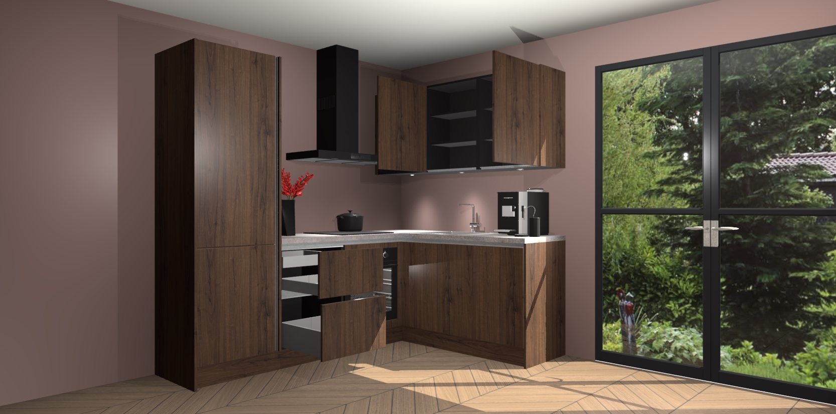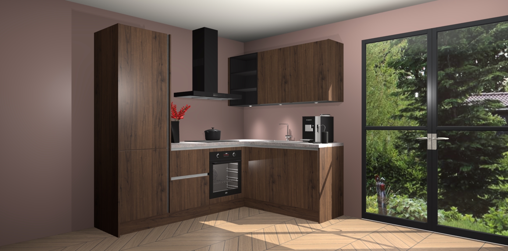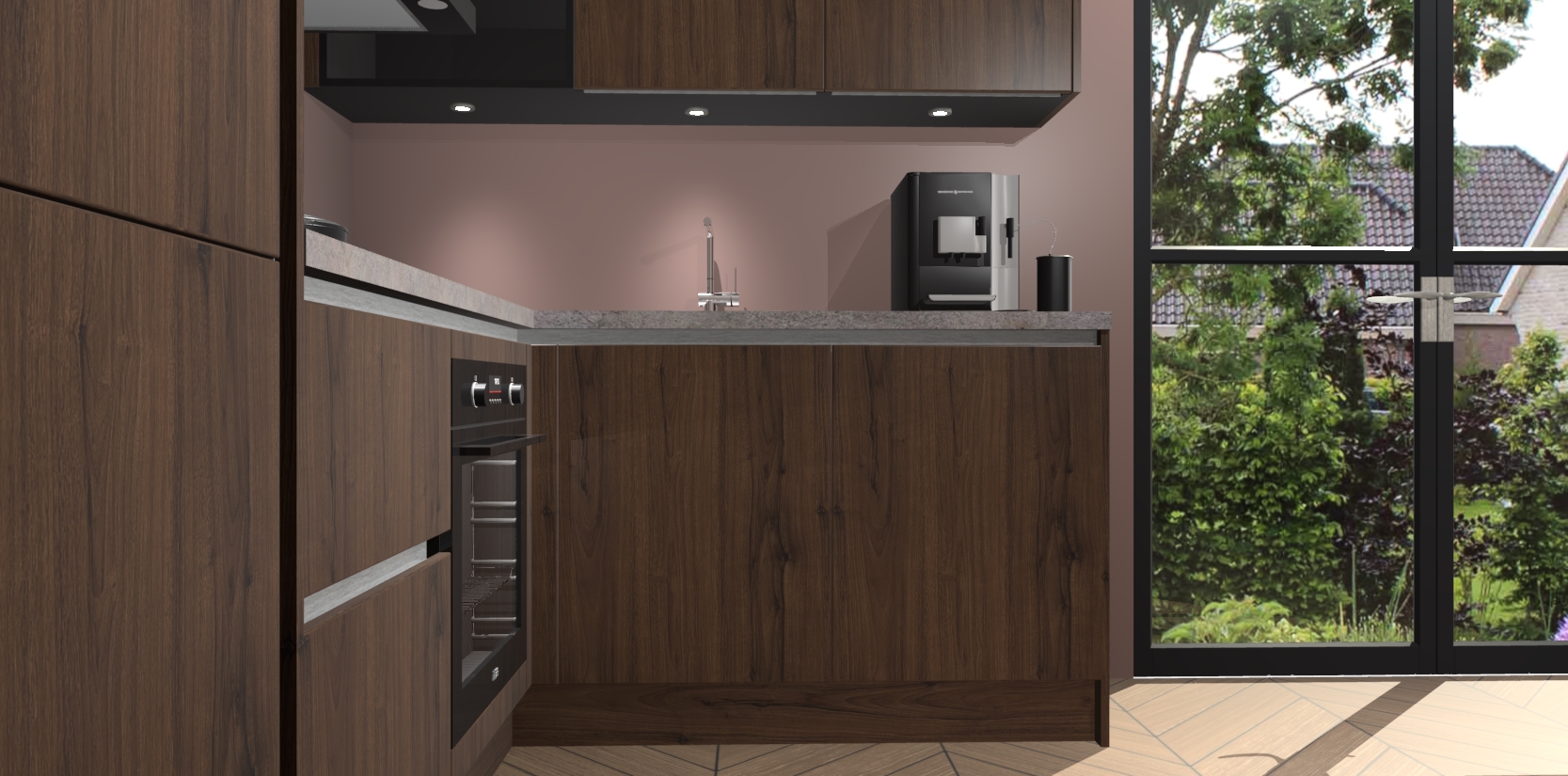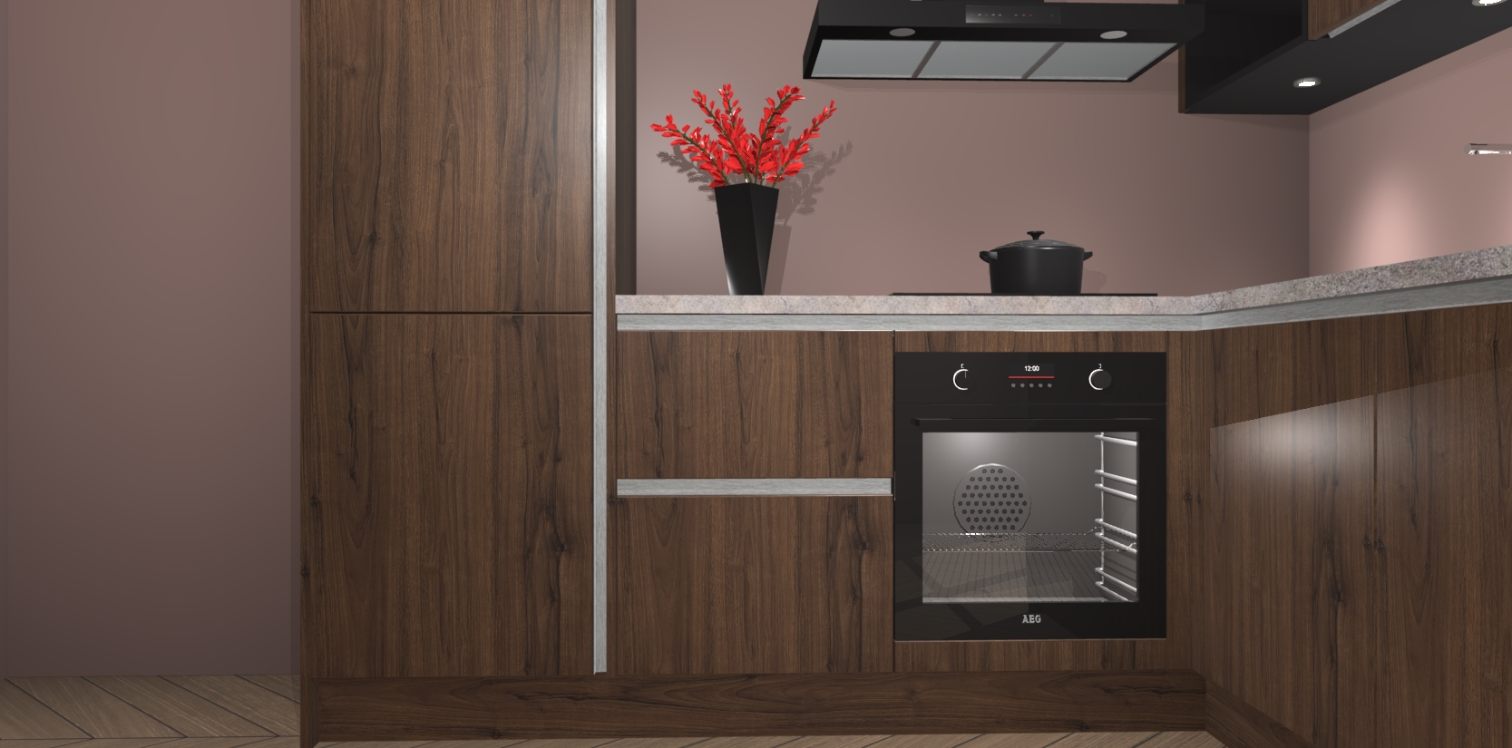 Wauw, dit is de Noten greeploze keuken Pilsen! U kunt gerust zeggen dat u elegantie combineert met functionaliteit met deze keuken. Met een modern en chique ontwerp is de keuken precies wat u nodig heeft om uw ruimte te verfraaien. De binnenzijde van de kasten is in dezelfde donkere kleur als de buitenzijde voor een uniforme look, compleet met softclose-kasten die stil sluiten.