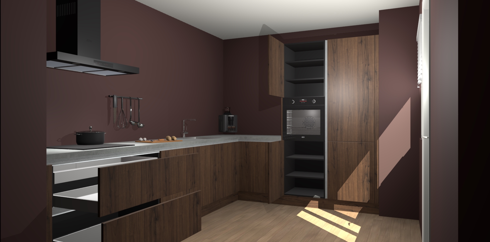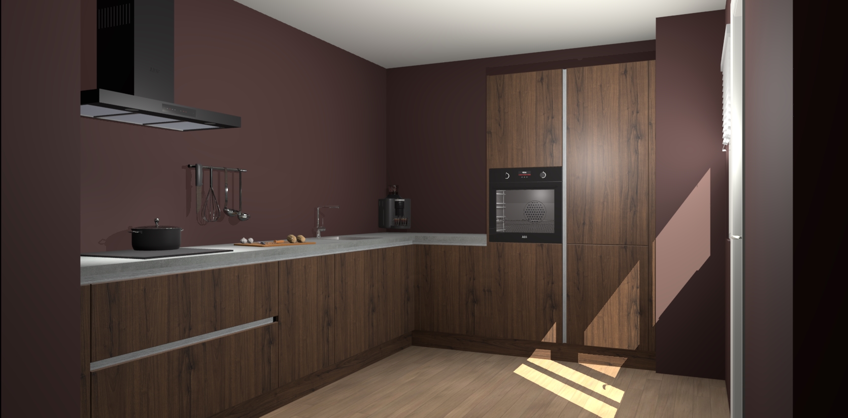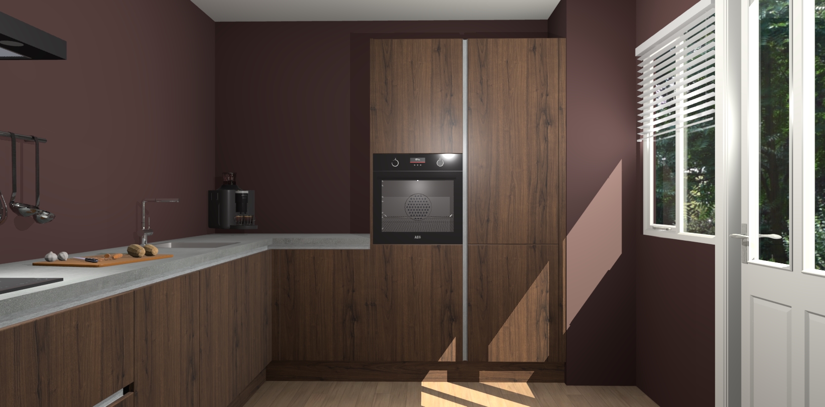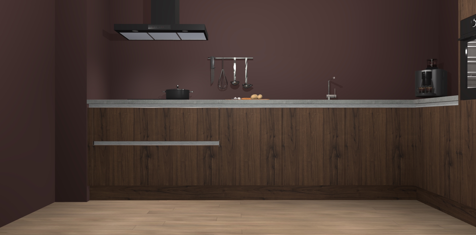 Welkom bij de Noten greeploze keuken Portland. Deze prachtige keuken zal de komende jaren het middelpunt van de belangstelling in uw huis zijn. Uitgerust met vijf inbouwapparaten komt u nooit kookgereedschap tekort. Bovendien geeft de warme houtlook elke ruimte een uitnodigende en tijdloze uitstraling.