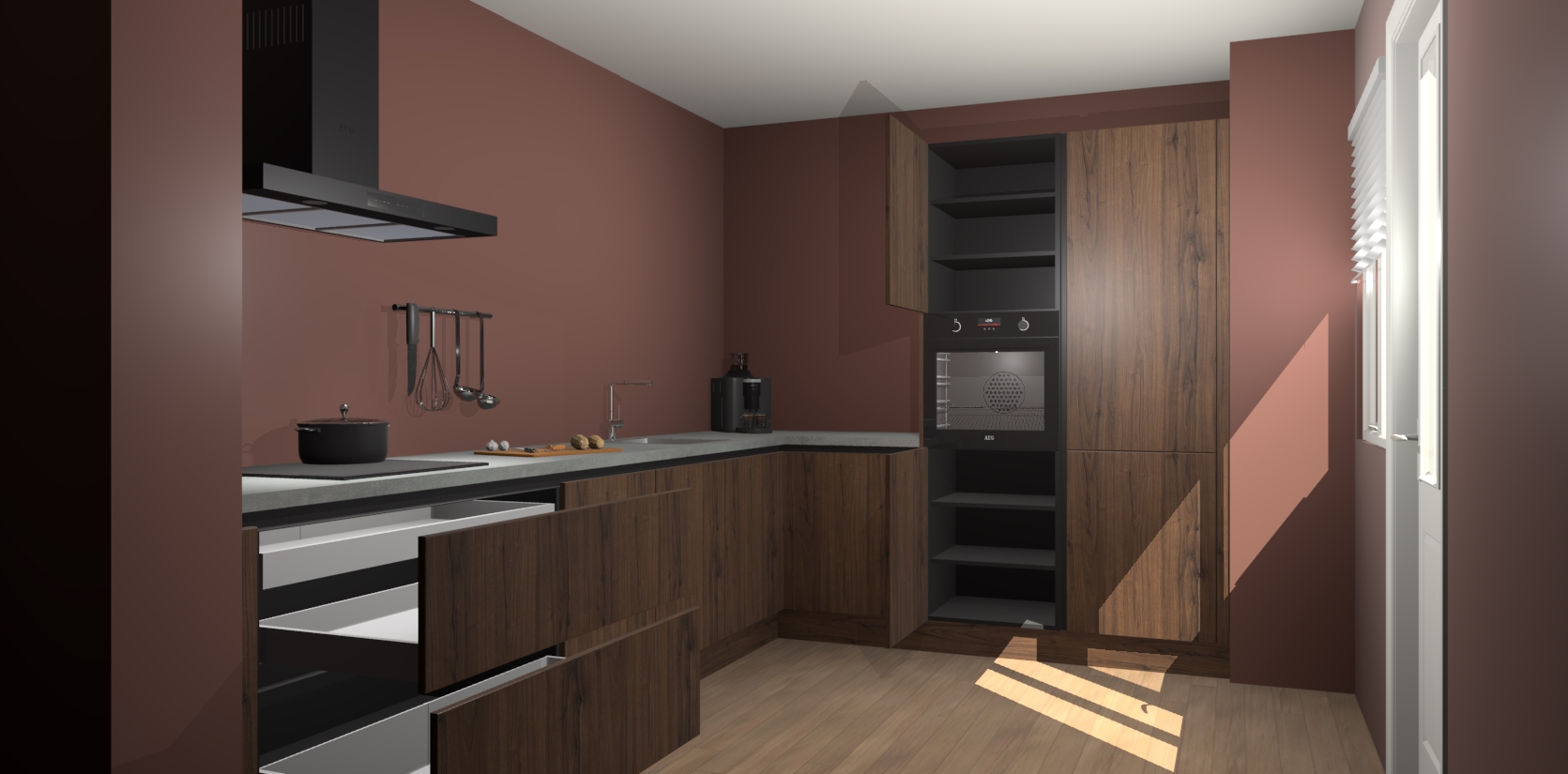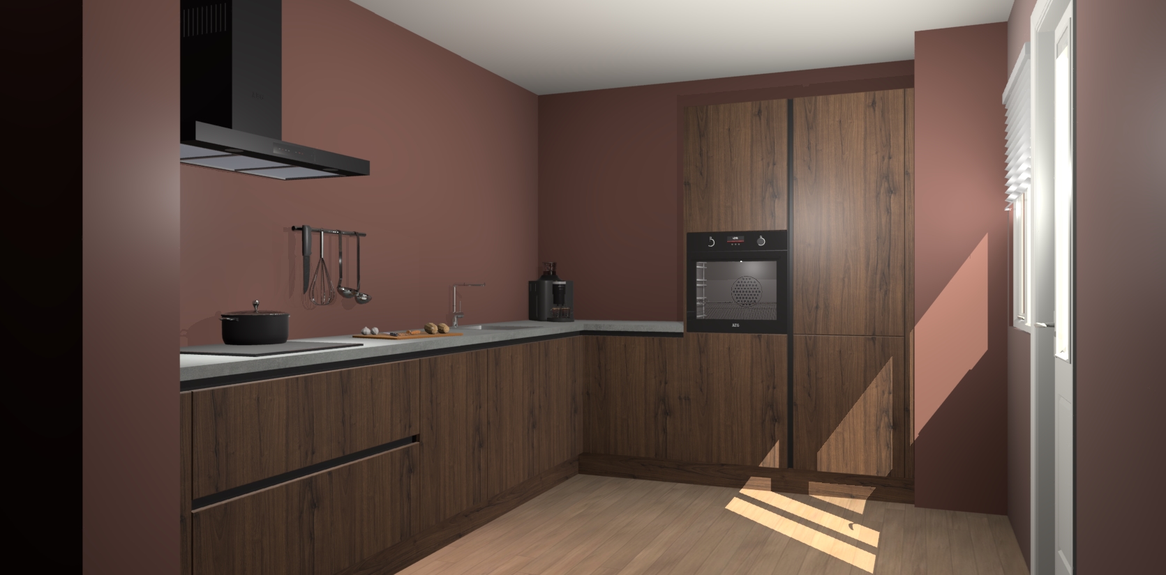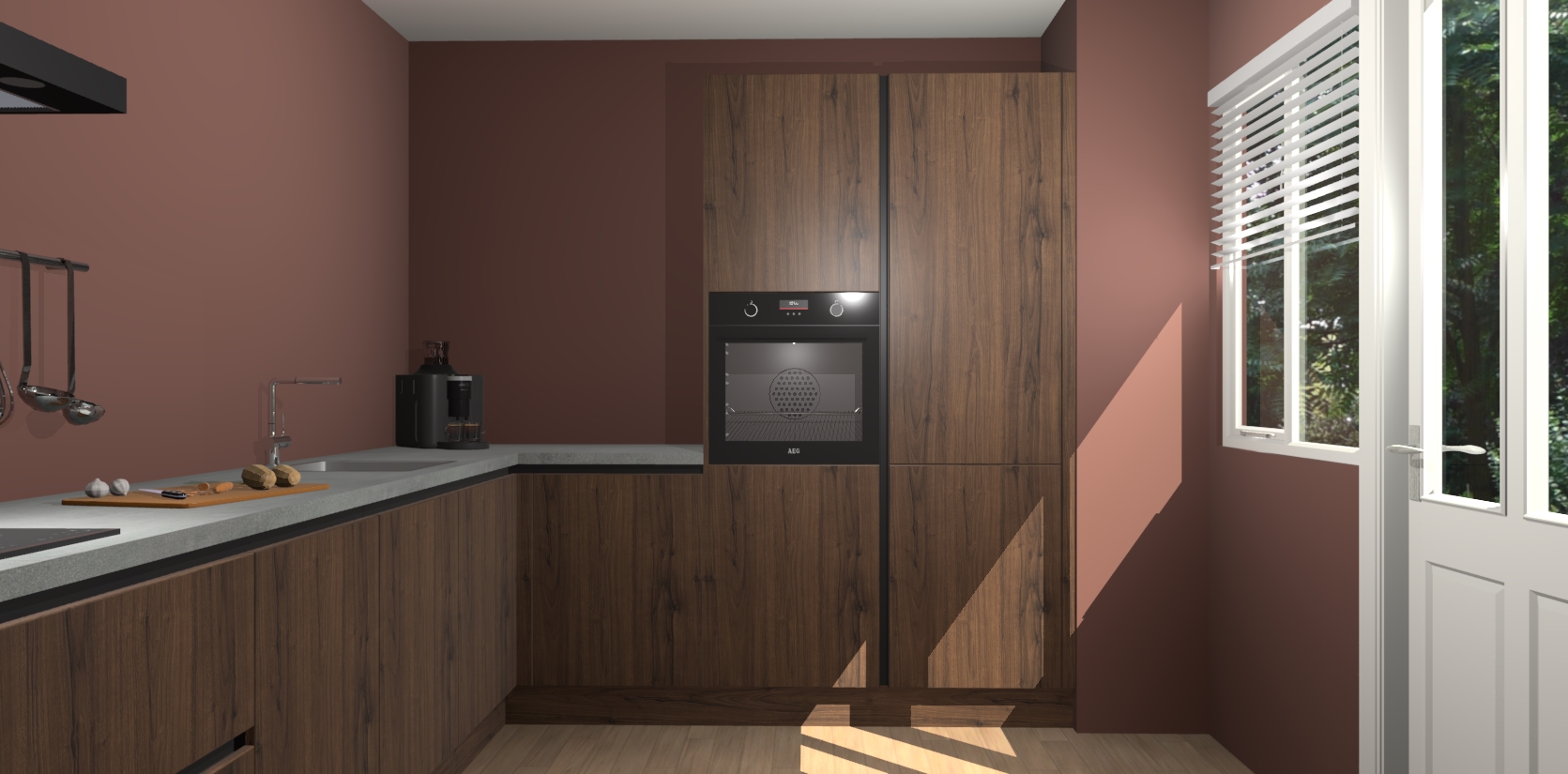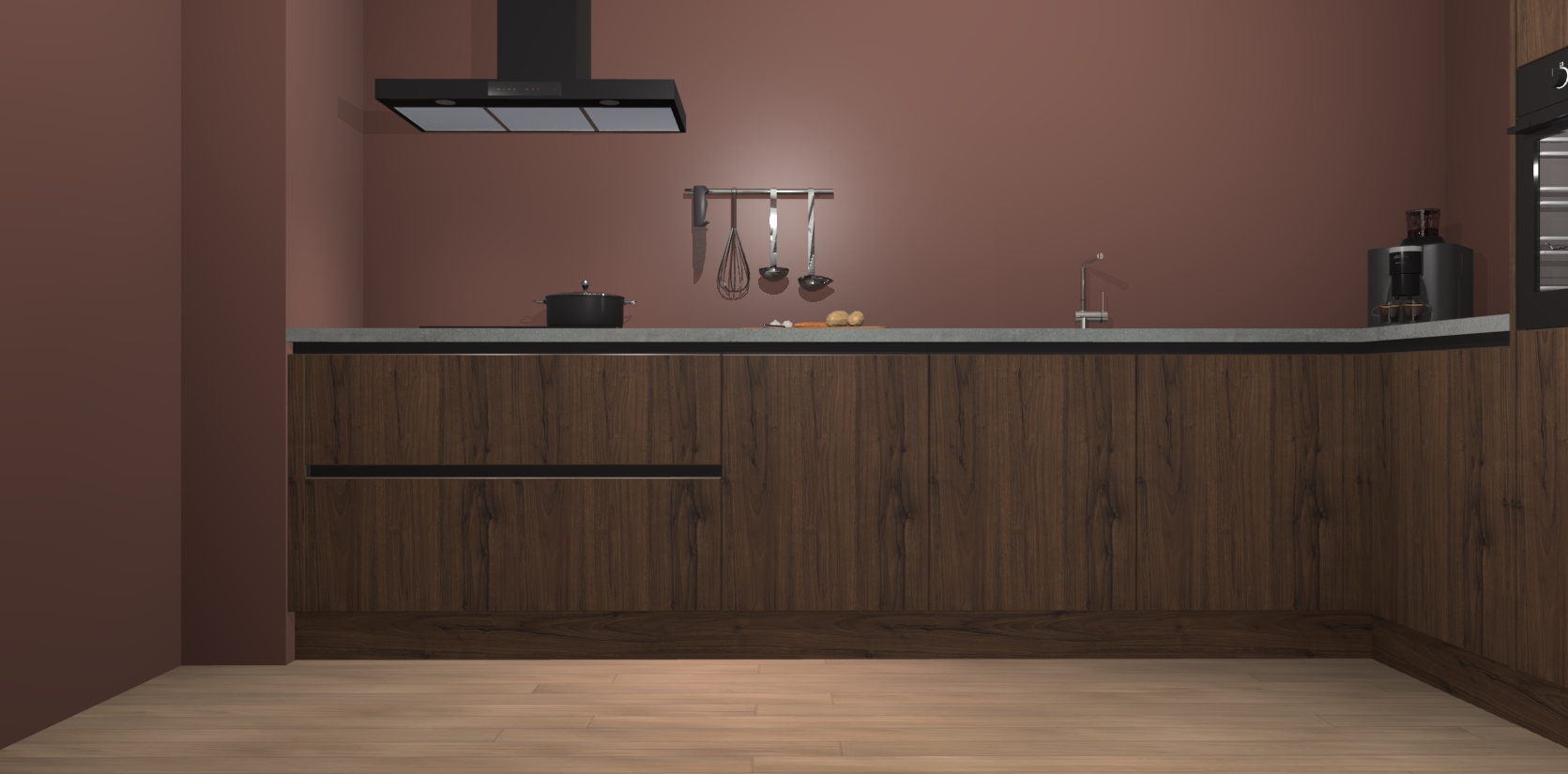 Welkom bij de Noten greeploze keuken Portland. Deze prachtige keuken zal de komende jaren het middelpunt van de belangstelling in uw huis zijn. Uitgerust met vijf inbouwapparaten komt u nooit kookgereedschap tekort. Bovendien geeft de warme houtlook elke ruimte een uitnodigende en tijdloze uitstraling.