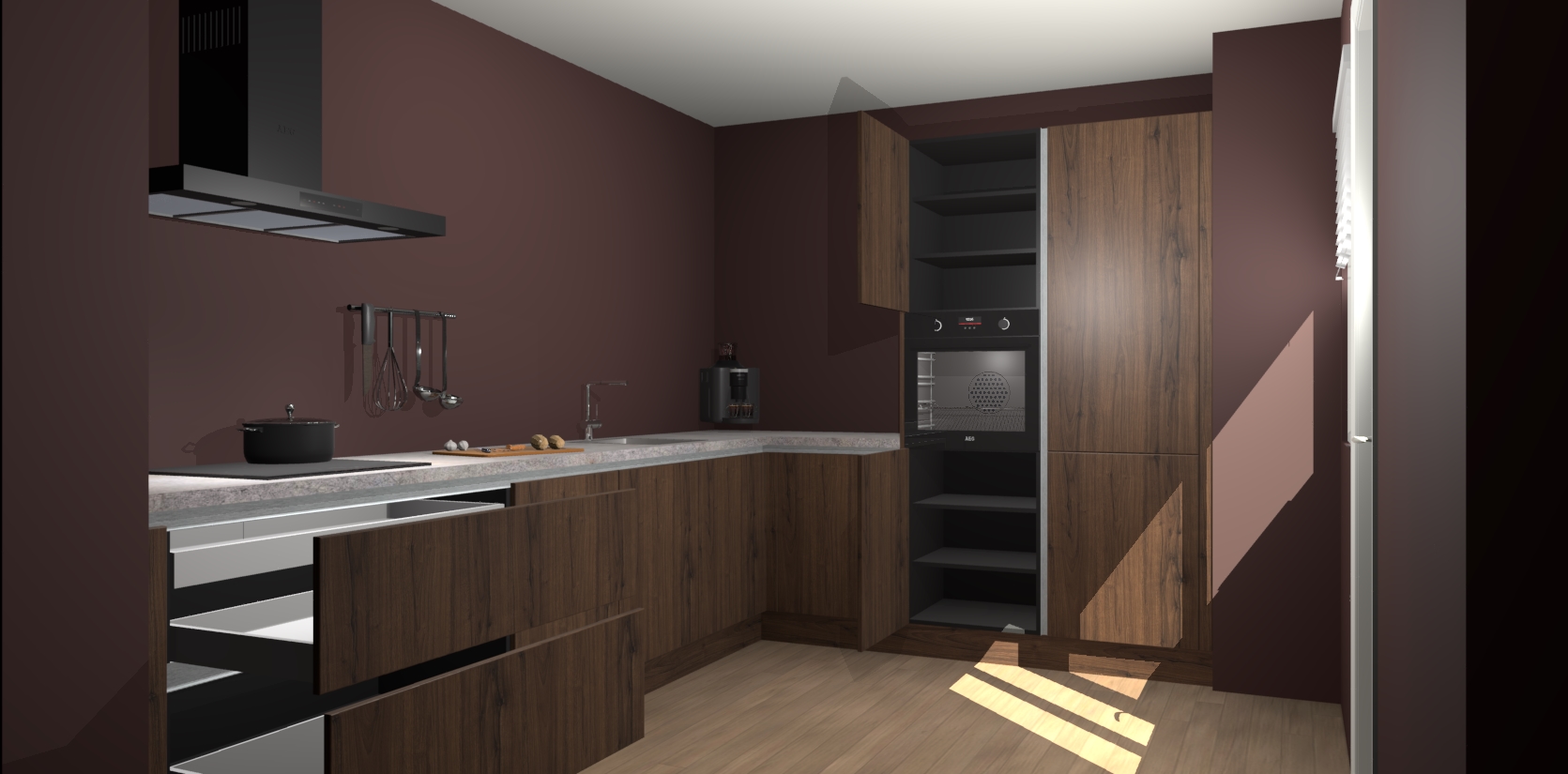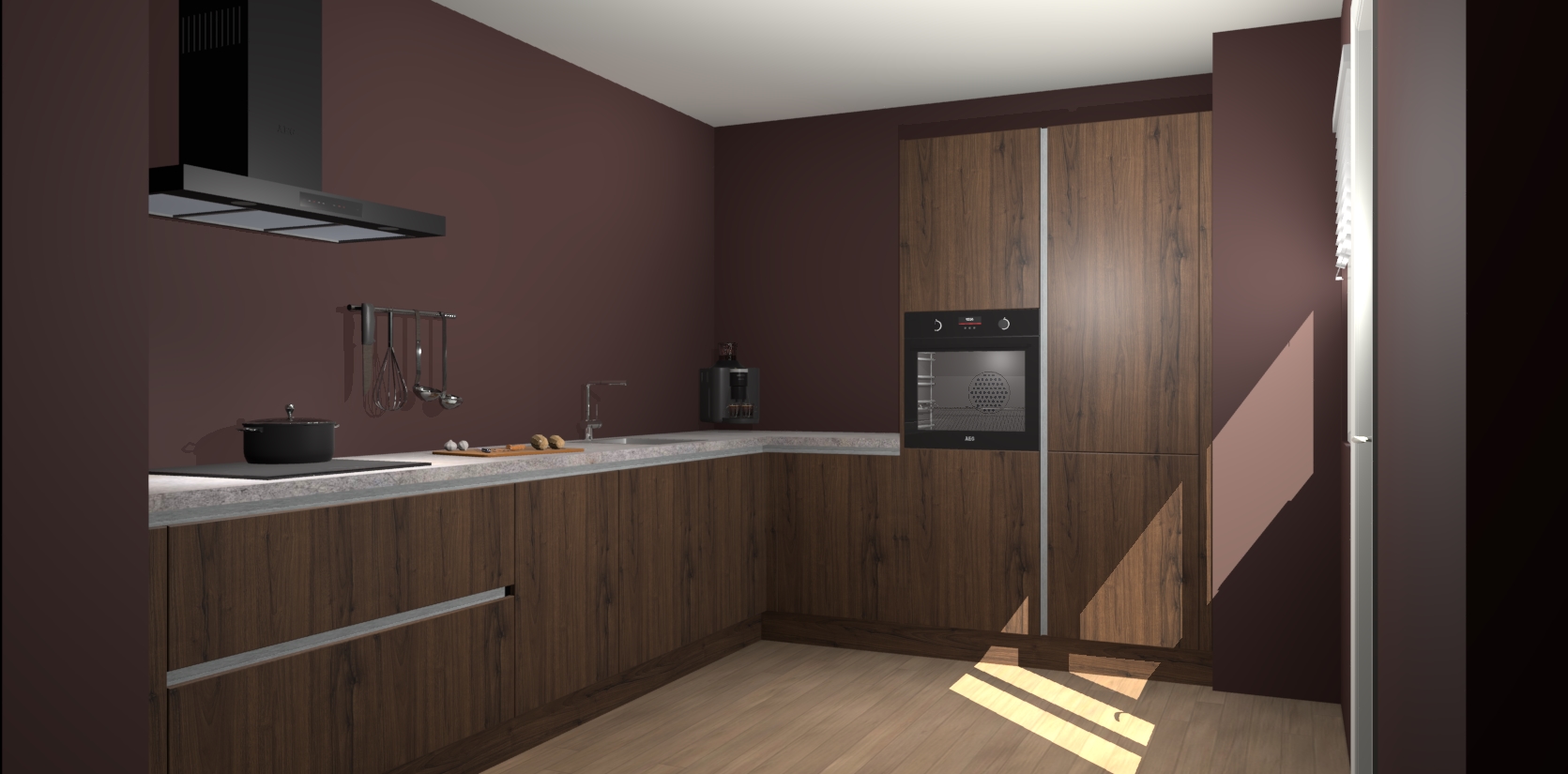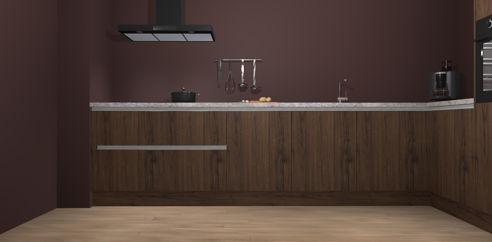 Welkom bij de Noten greeploze keuken Portland. Deze prachtige keuken zal de komende jaren het middelpunt van de belangstelling in uw huis zijn. Uitgerust met vijf inbouwapparaten komt u nooit kookgereedschap tekort. Bovendien geeft de warme houtlook elke ruimte een uitnodigende en tijdloze uitstraling.