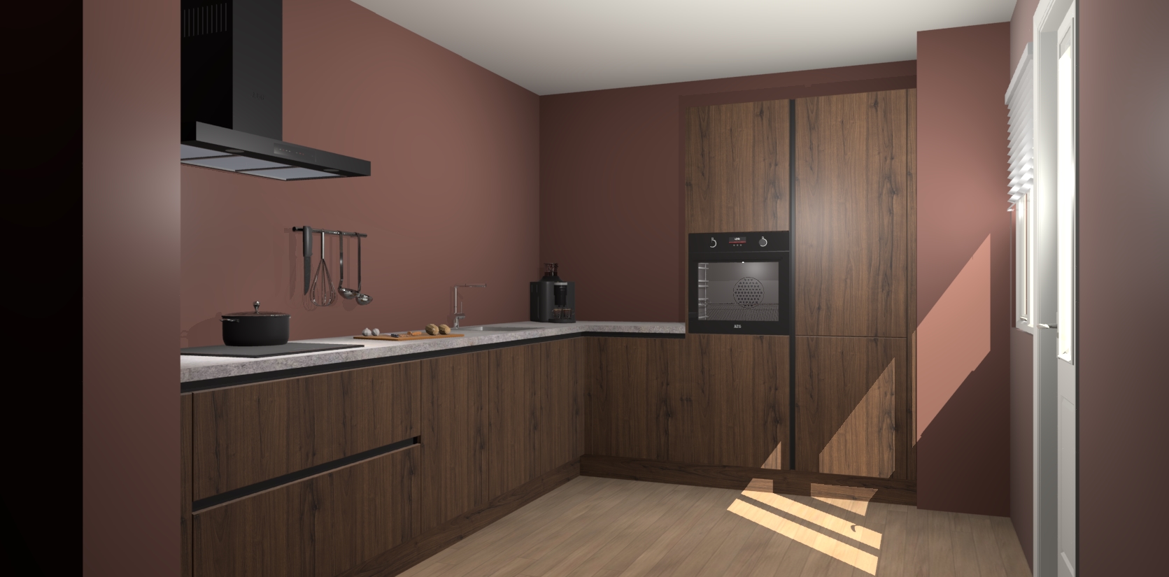 Welkom bij de Noten greeploze keuken Portland. Deze prachtige keuken zal de komende jaren het middelpunt van de belangstelling in uw huis zijn. Uitgerust met vijf inbouwapparaten komt u nooit kookgereedschap tekort. Bovendien geeft de warme houtlook elke ruimte een uitnodigende en tijdloze uitstraling.