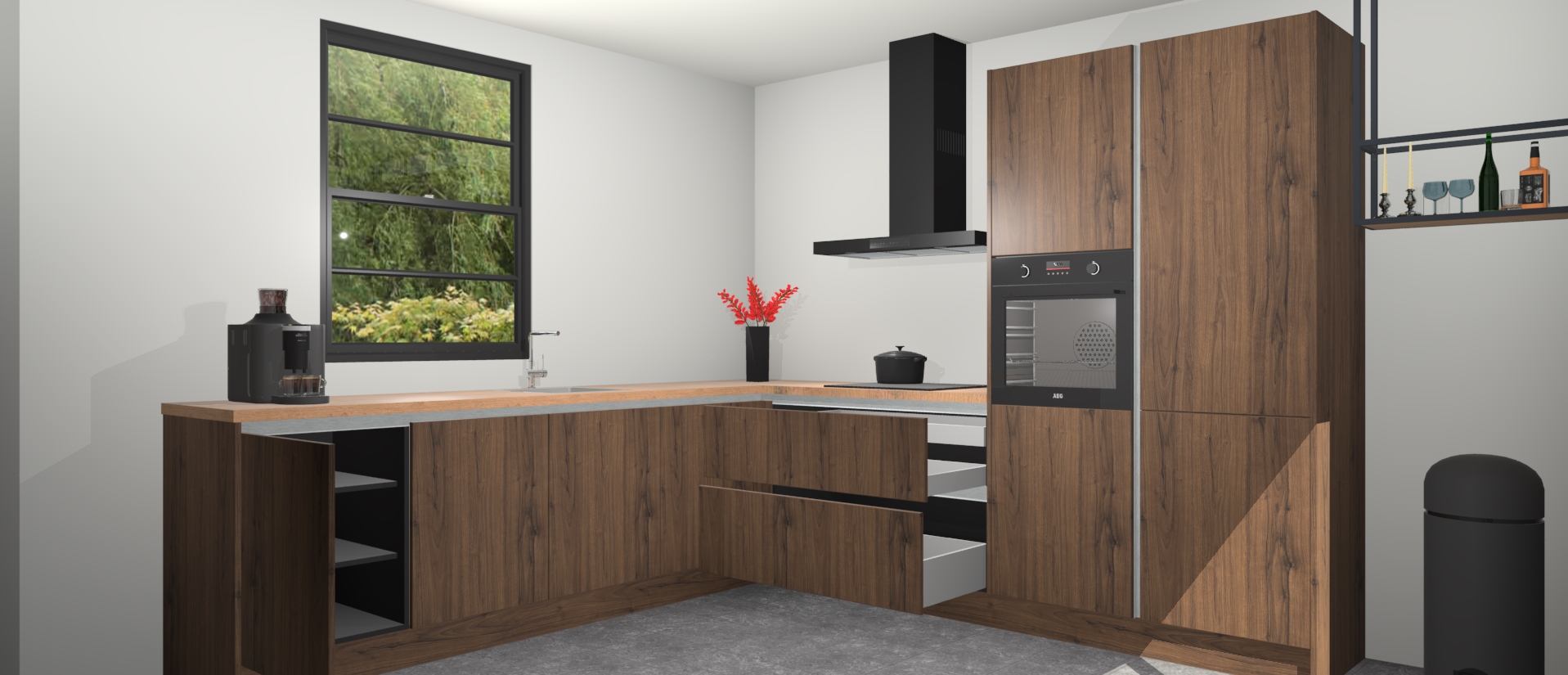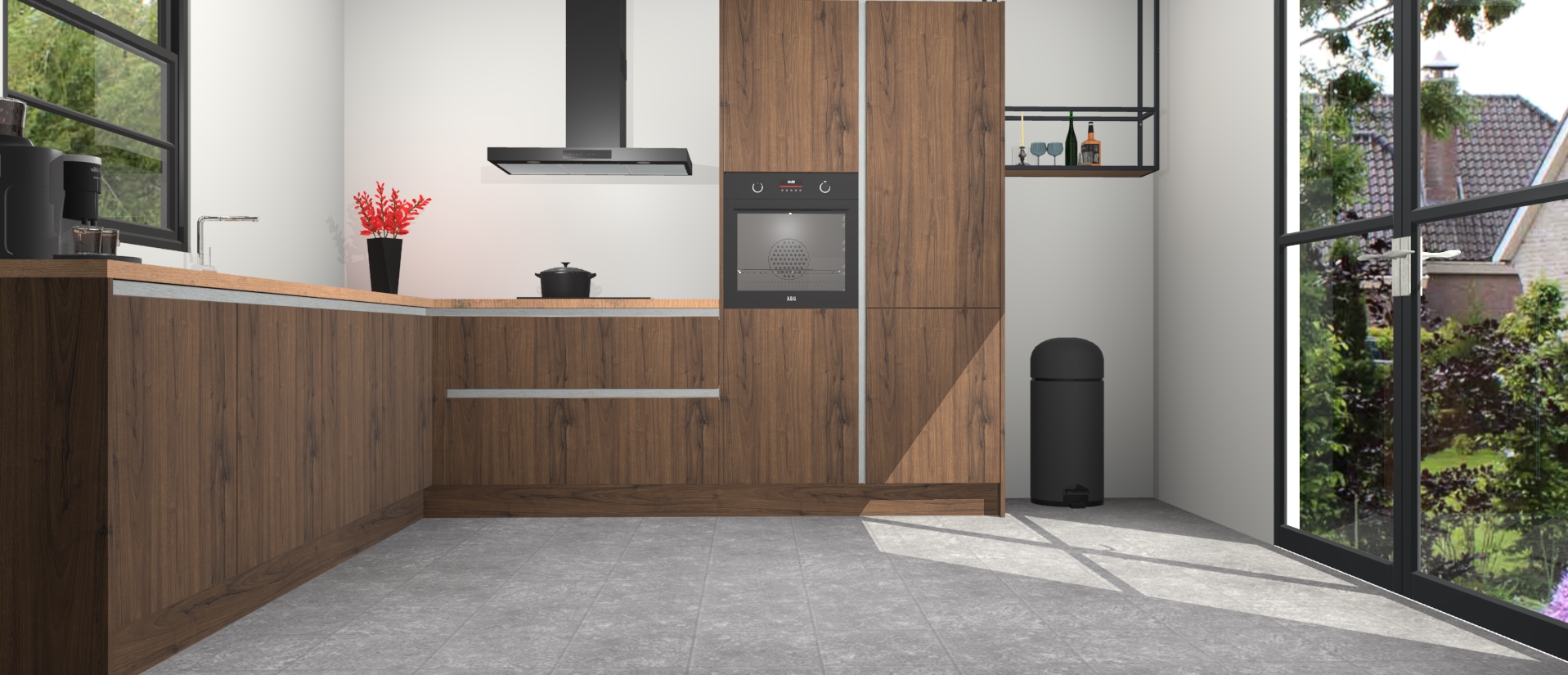 De greeploze noten keuken Porto heeft 5 ingebouwde apparaten - een oven, inductiekookplaat, afzuigkap, vaatwasser en koelkast - waarmee u in een handomdraai heerlijke gerechten bereidt. Soft-close deuren zorgen voor nog meer functionaliteit en gemak. En dit alles voor een onverslaanbaar vaste prijs. En als u nu bestelt, duurt de levering maar 7 weken! Wat nog ongelooflijker is, is dat onze kasten voor gemonteerd worden geleverd.