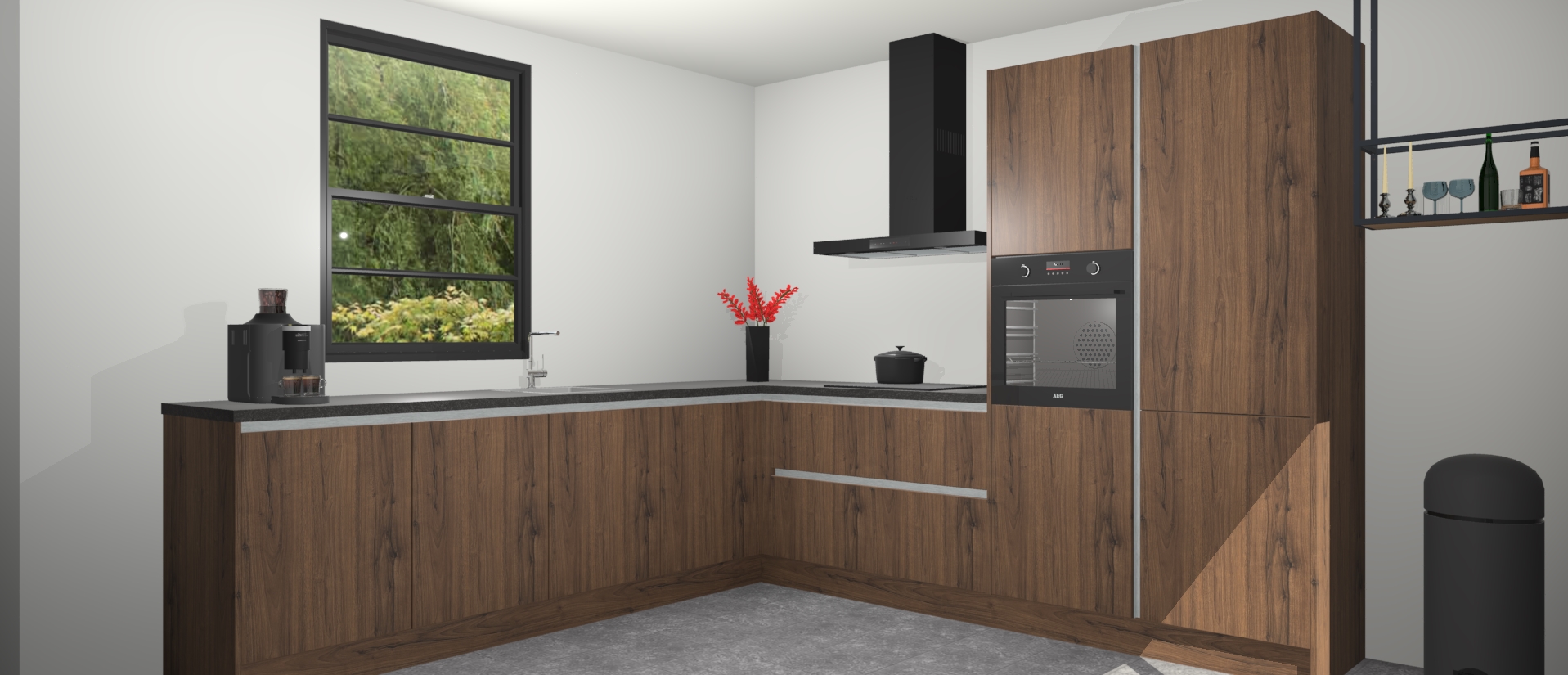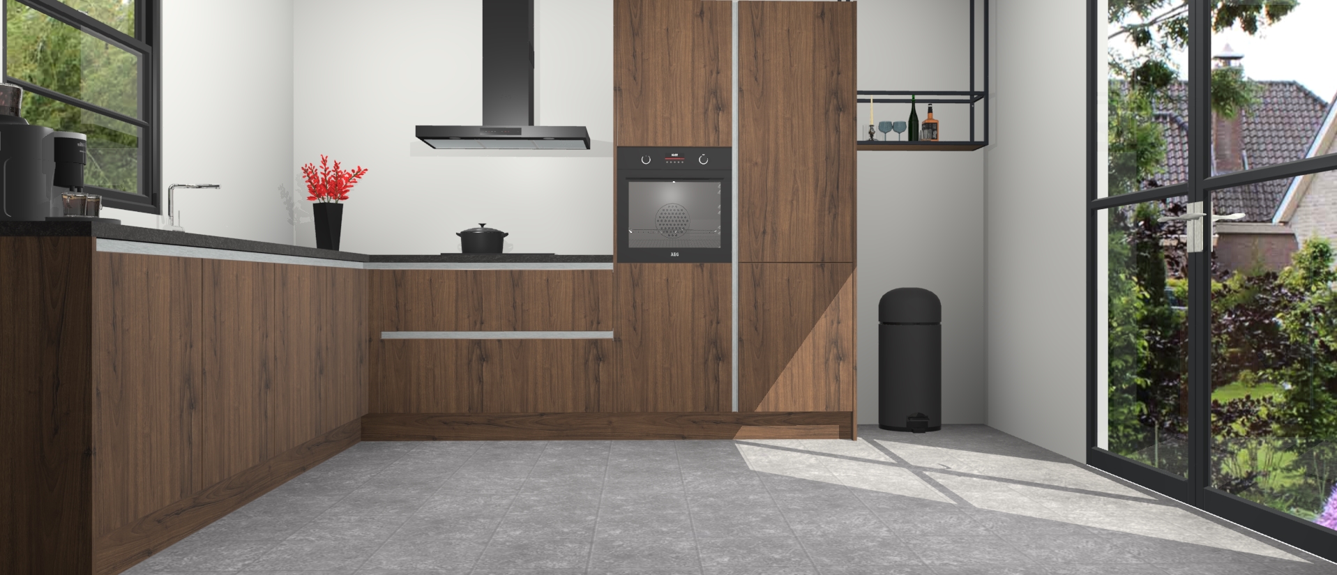 Als u op zoek bent naar stijl in combinatie met optimale efficiëntie, dan is de greeploze noten keuken Porto de perfecte keuze voor elk modern huis. Plaats vandaag nog uw bestelling en begin met koken in uw nieuwe keuken voor u het weet!