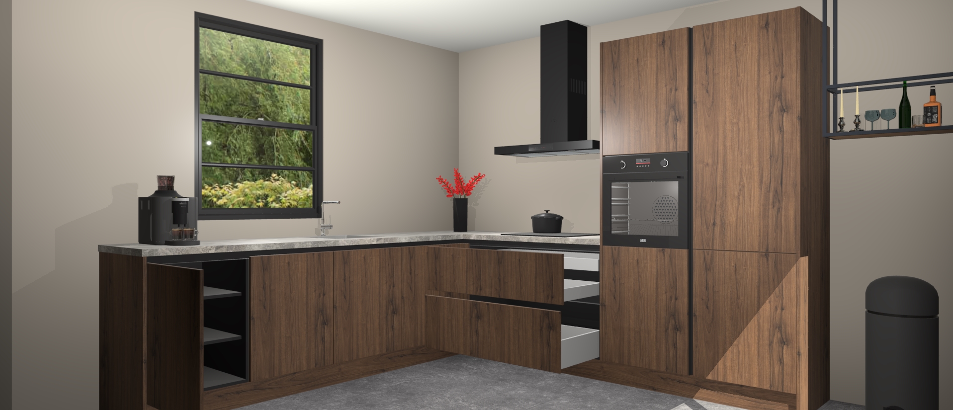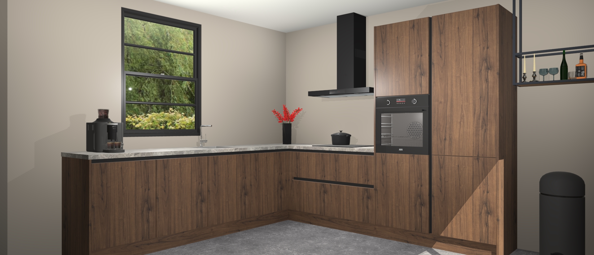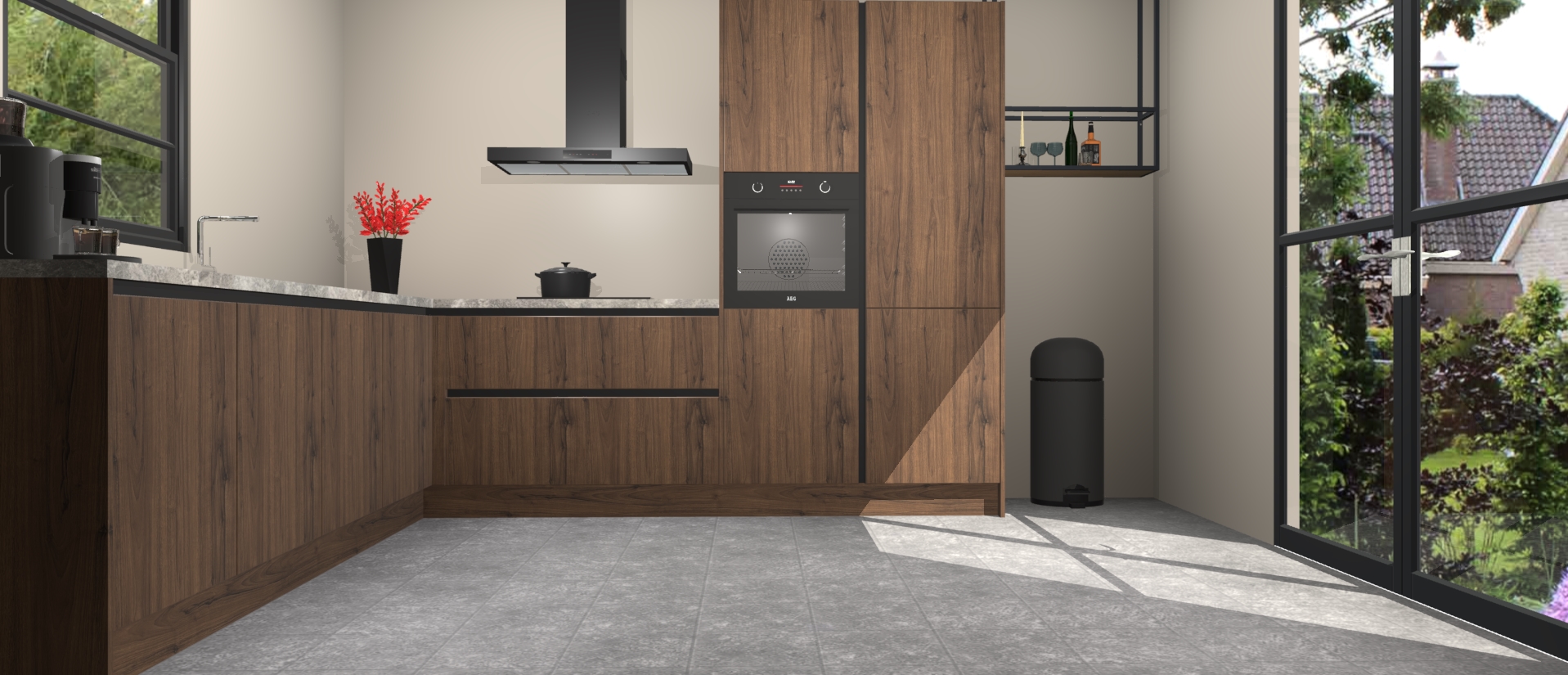 De greeploze noten keuken Porto heeft 5 ingebouwde apparaten - een oven, inductiekookplaat, afzuigkap, vaatwasser en koelkast - waarmee u in een handomdraai heerlijke gerechten bereidt. Soft-close deuren zorgen voor nog meer functionaliteit en gemak. En dit alles voor een onverslaanbaar vaste prijs. En als u nu bestelt, duurt de levering maar 7 weken! Wat nog ongelooflijker is, is dat onze kasten voor gemonteerd worden geleverd.