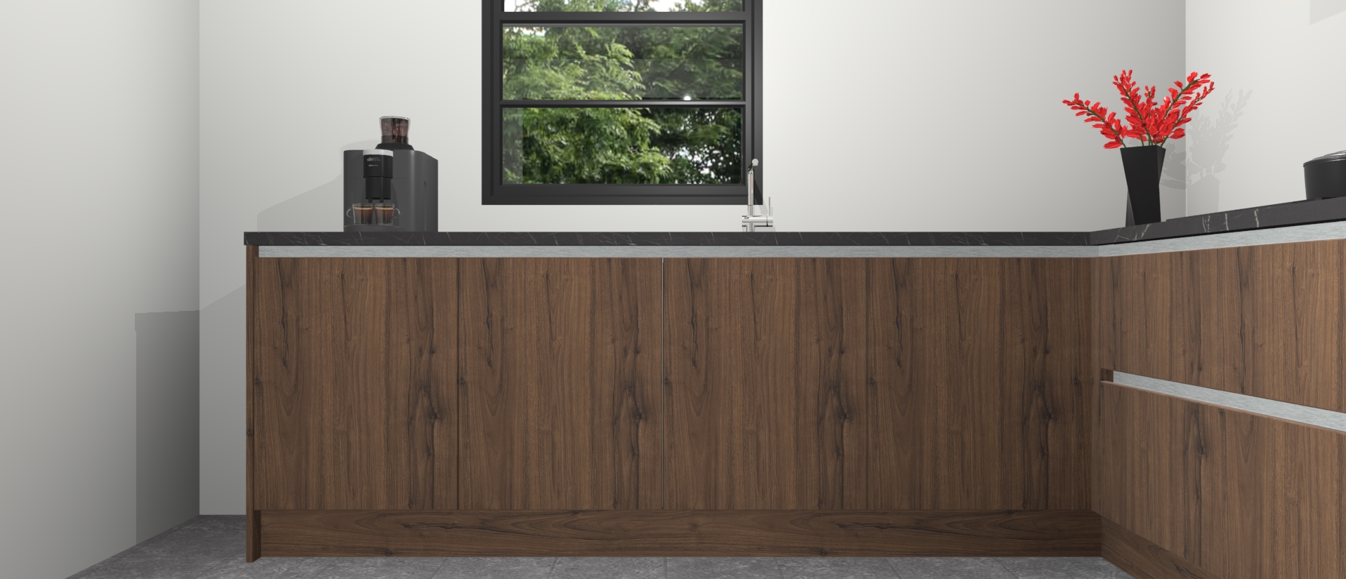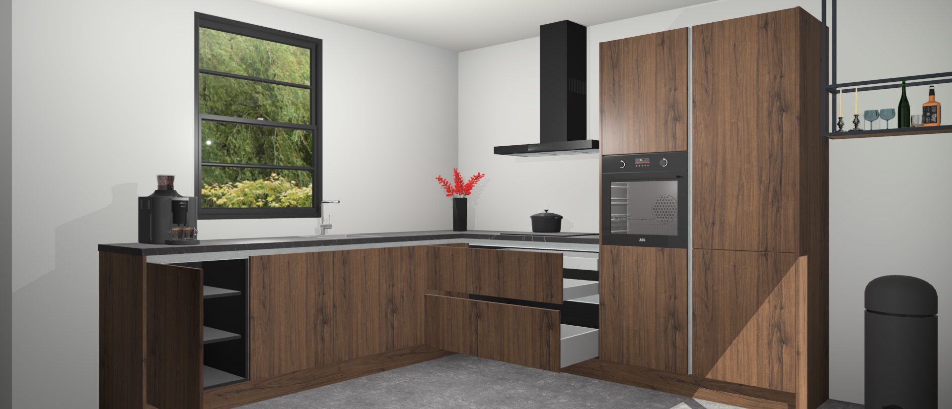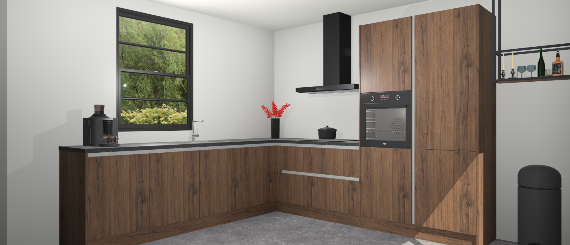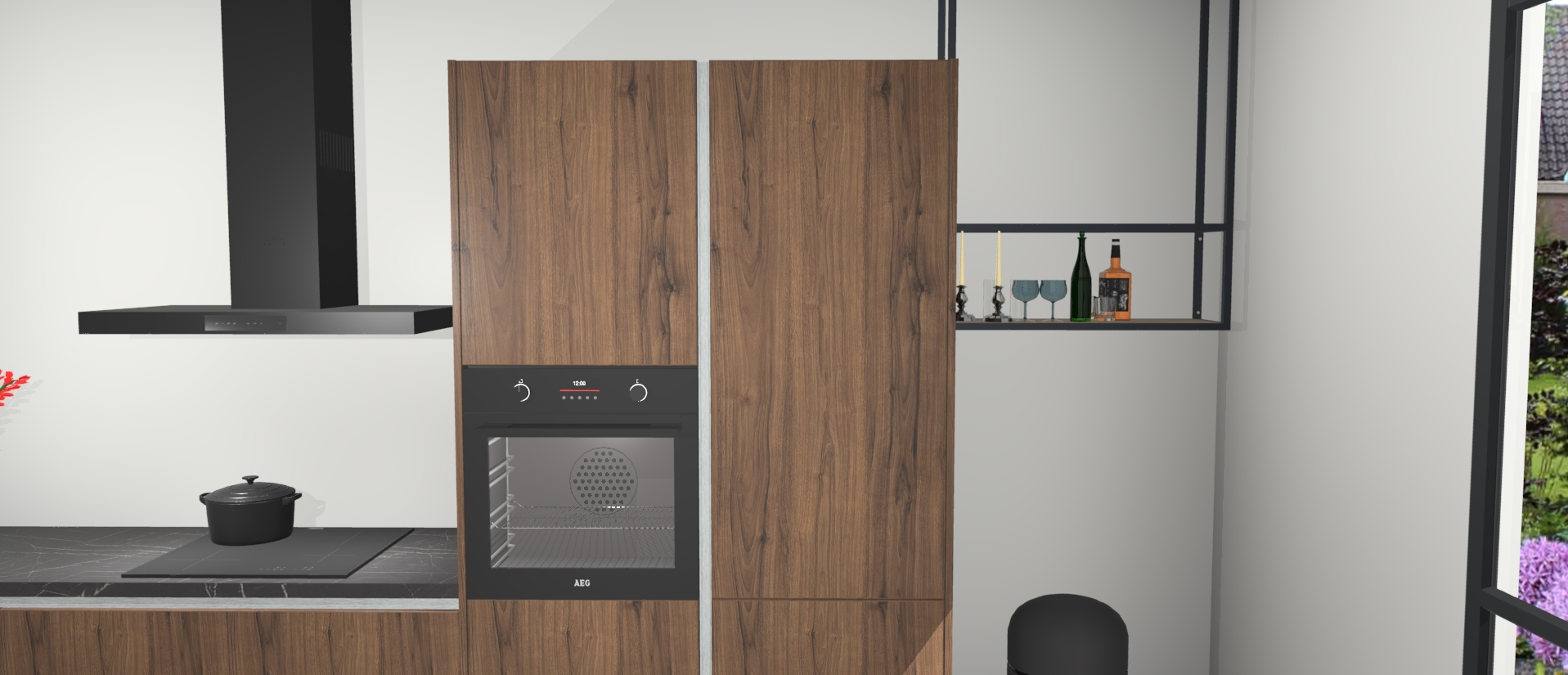 De greeploze noten keuken Porto heeft 5 ingebouwde apparaten - een oven, inductiekookplaat, afzuigkap, vaatwasser en koelkast - waarmee u in een handomdraai heerlijke gerechten bereidt. Soft-close deuren zorgen voor nog meer functionaliteit en gemak. En dit alles voor een onverslaanbaar vaste prijs. En als u nu bestelt, duurt de levering maar 7 weken! Wat nog ongelooflijker is, is dat onze kasten voor gemonteerd worden geleverd.
