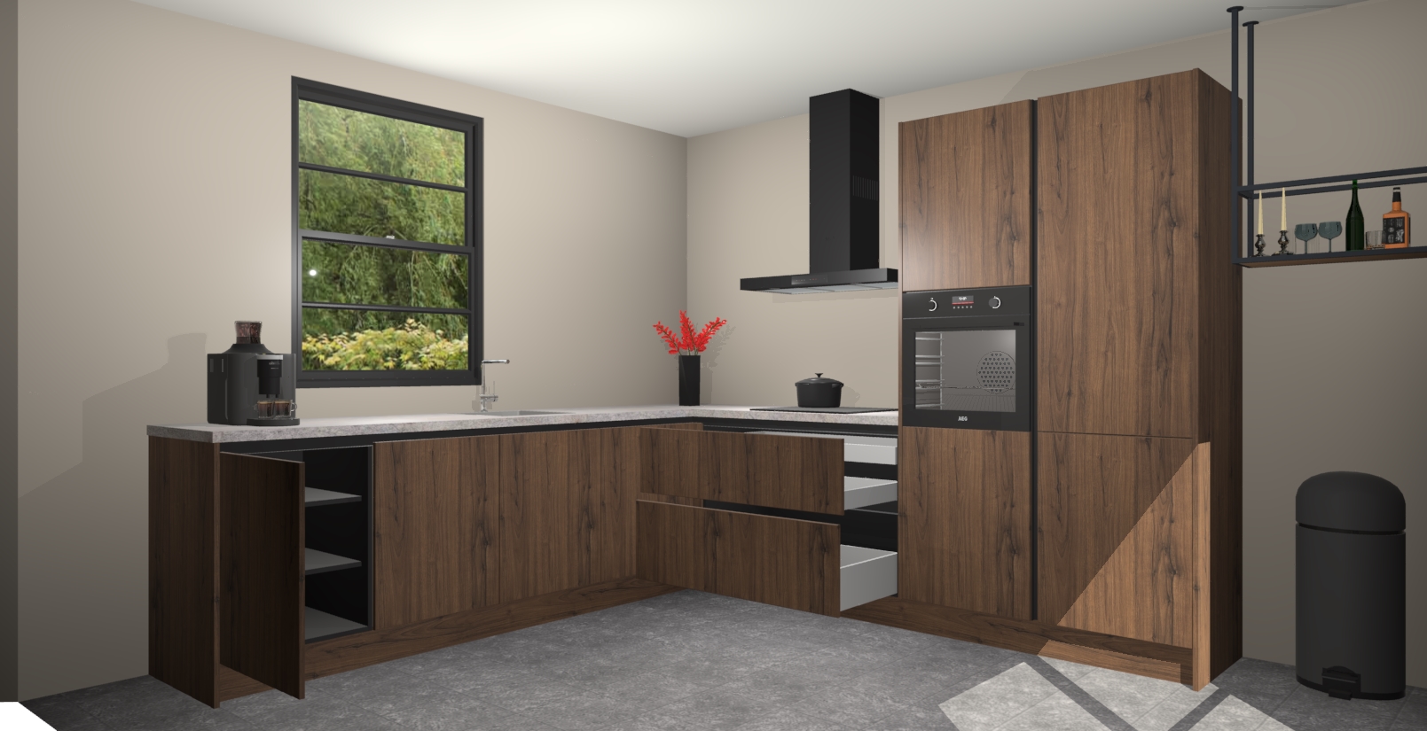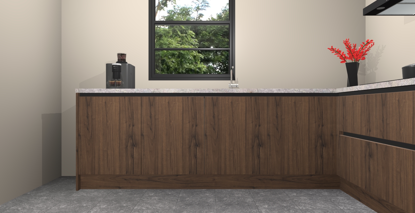 De greeploze noten keuken Porto heeft 5 ingebouwde apparaten - een oven, inductiekookplaat, afzuigkap, vaatwasser en koelkast - waarmee u in een handomdraai heerlijke gerechten bereidt. Soft-close deuren zorgen voor nog meer functionaliteit en gemak. En dit alles voor een onverslaanbaar vaste prijs. En als u nu bestelt, duurt de levering maar 7 weken! Wat nog ongelooflijker is, is dat onze kasten voor gemonteerd worden geleverd.