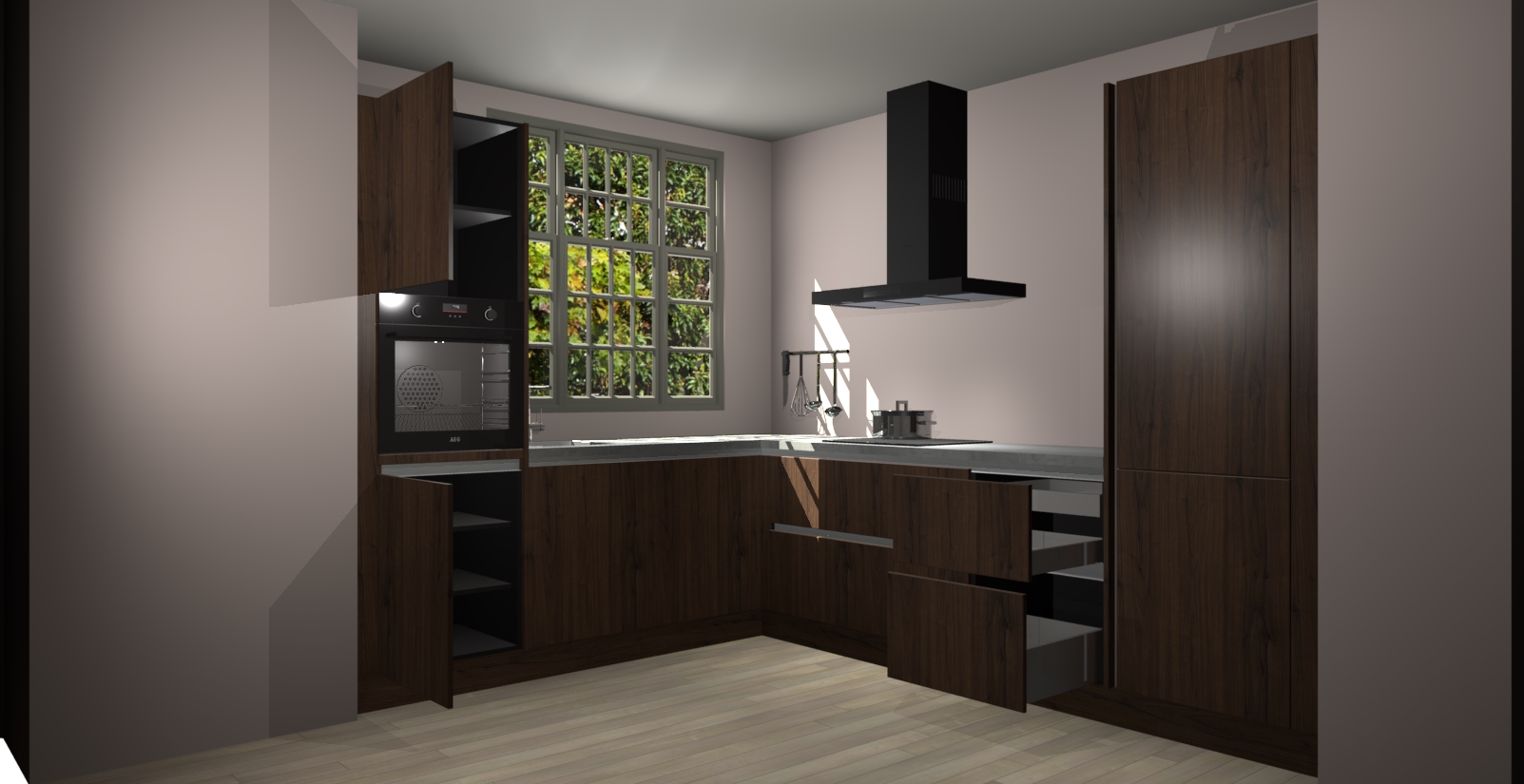 Met een modern, tijdloos design en ruime opslagruimte, zult u zich in no-time thuis voelen in uw nieuwe keuken. Uw leven wordt eenvoudiger met de soft-close deuren die voor het ultieme stille comfort zorgen - geen geluid dat u stoort terwijl u kookt. Ook is de keuken voorzien van 5 ingebouwde apparaten: een oven, inductie kookplaat, afzuigkap, vaatwasser en koelkast. Deze kunnen gemakkelijk na bestelling worden bijgewerkt naar AEG - waardoor uw luxe ervaring compleet is.