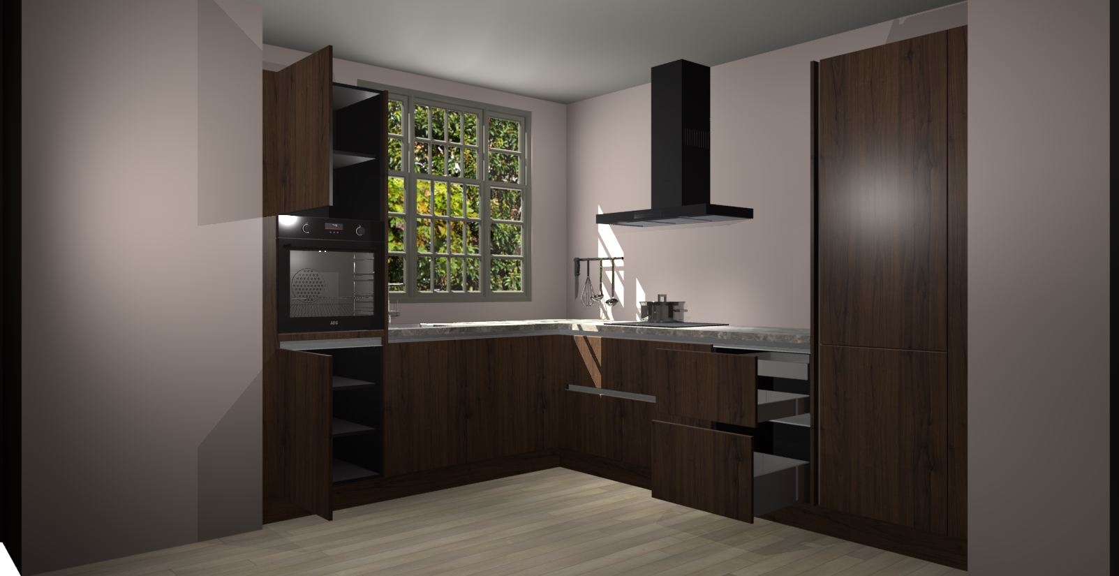 Met een modern, tijdloos design en ruime opslagruimte, zult u zich in no-time thuis voelen in uw nieuwe keuken. Uw leven wordt eenvoudiger met de soft-close deuren die voor het ultieme stille comfort zorgen - geen geluid dat u stoort terwijl u kookt. Ook is de keuken voorzien van 5 ingebouwde apparaten: een oven, inductie kookplaat, afzuigkap, vaatwasser en koelkast. Deze kunnen gemakkelijk na bestelling worden bijgewerkt naar AEG - waardoor uw luxe ervaring compleet is.