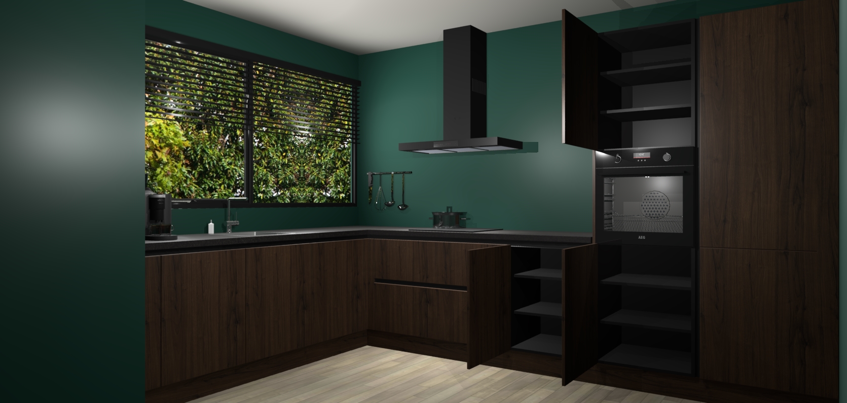Met een modern, tijdloos design en ruime opslagruimte, zult u zich in no-time thuis voelen in uw nieuwe keuken. Uw leven wordt eenvoudiger met de soft-close deuren die voor het ultieme stille comfort zorgen - geen geluid dat u stoort terwijl u kookt. Ook is de keuken voorzien van 5 ingebouwde apparaten: een oven, inductie kookplaat, afzuigkap, vaatwasser en koelkast. Deze kunnen gemakkelijk na bestelling worden bijgewerkt naar AEG - waardoor uw luxe ervaring compleet is.